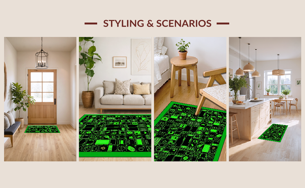 Ultra Soft Area Rug, Non Slip, Stain Resistant, Washable Area Rugs for Living Room, Bedroom, Whimsical Nature-Inspired Design(Green) Overview: