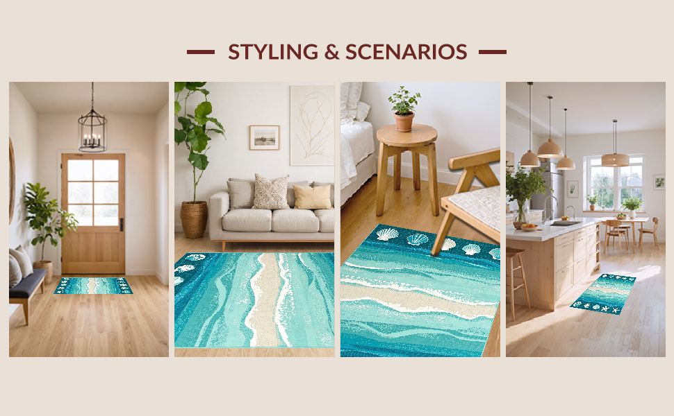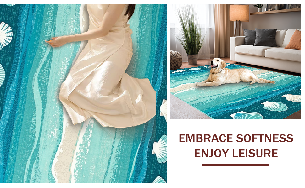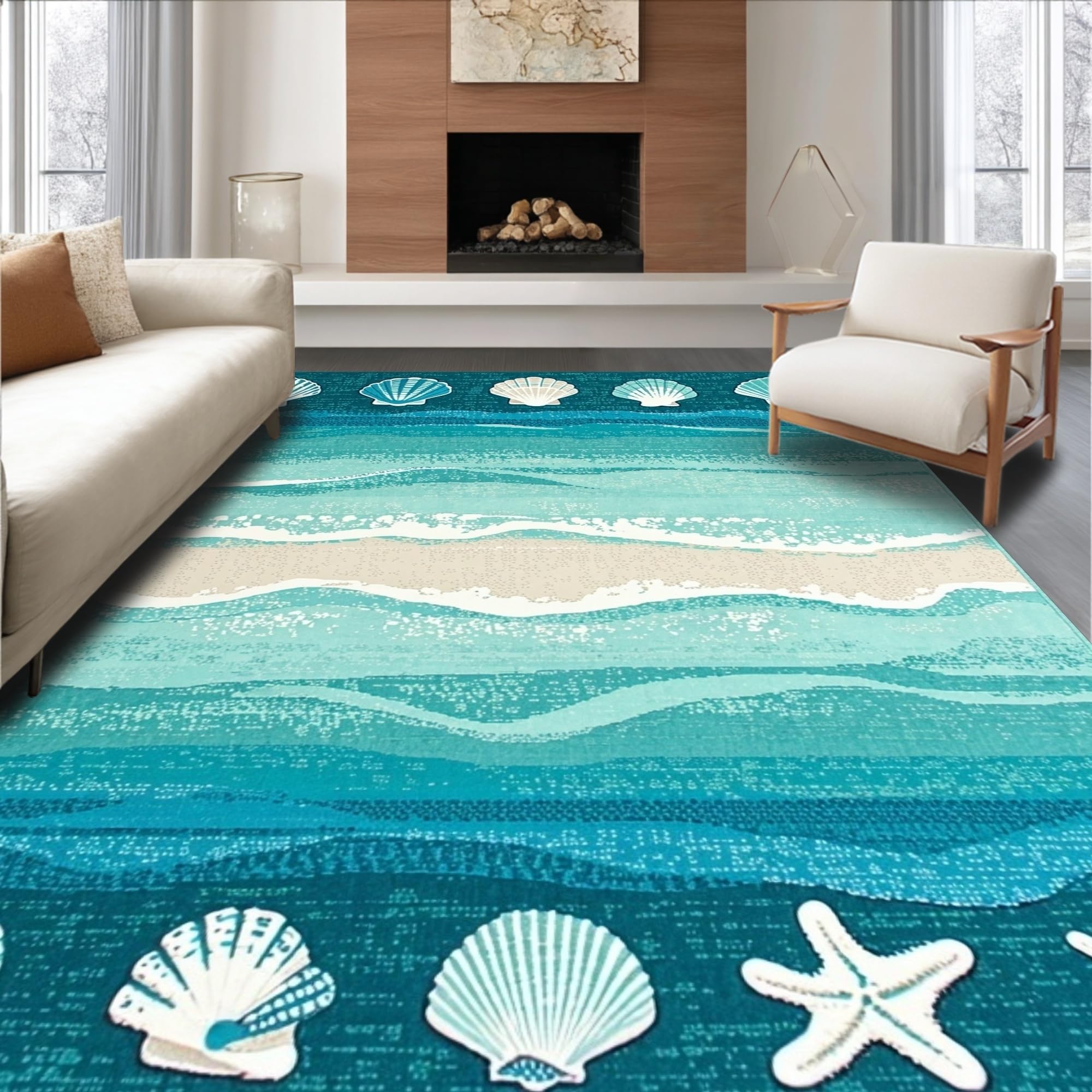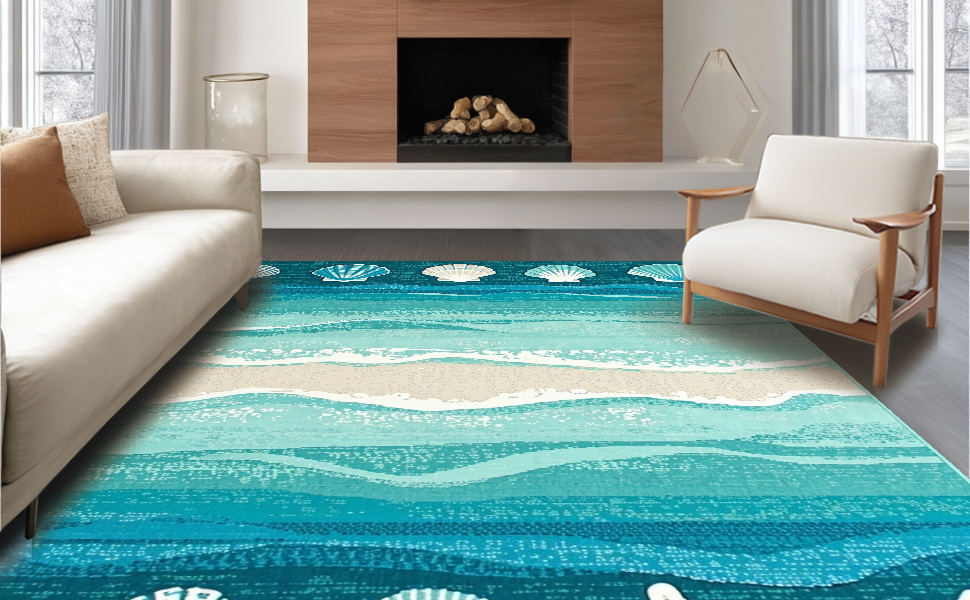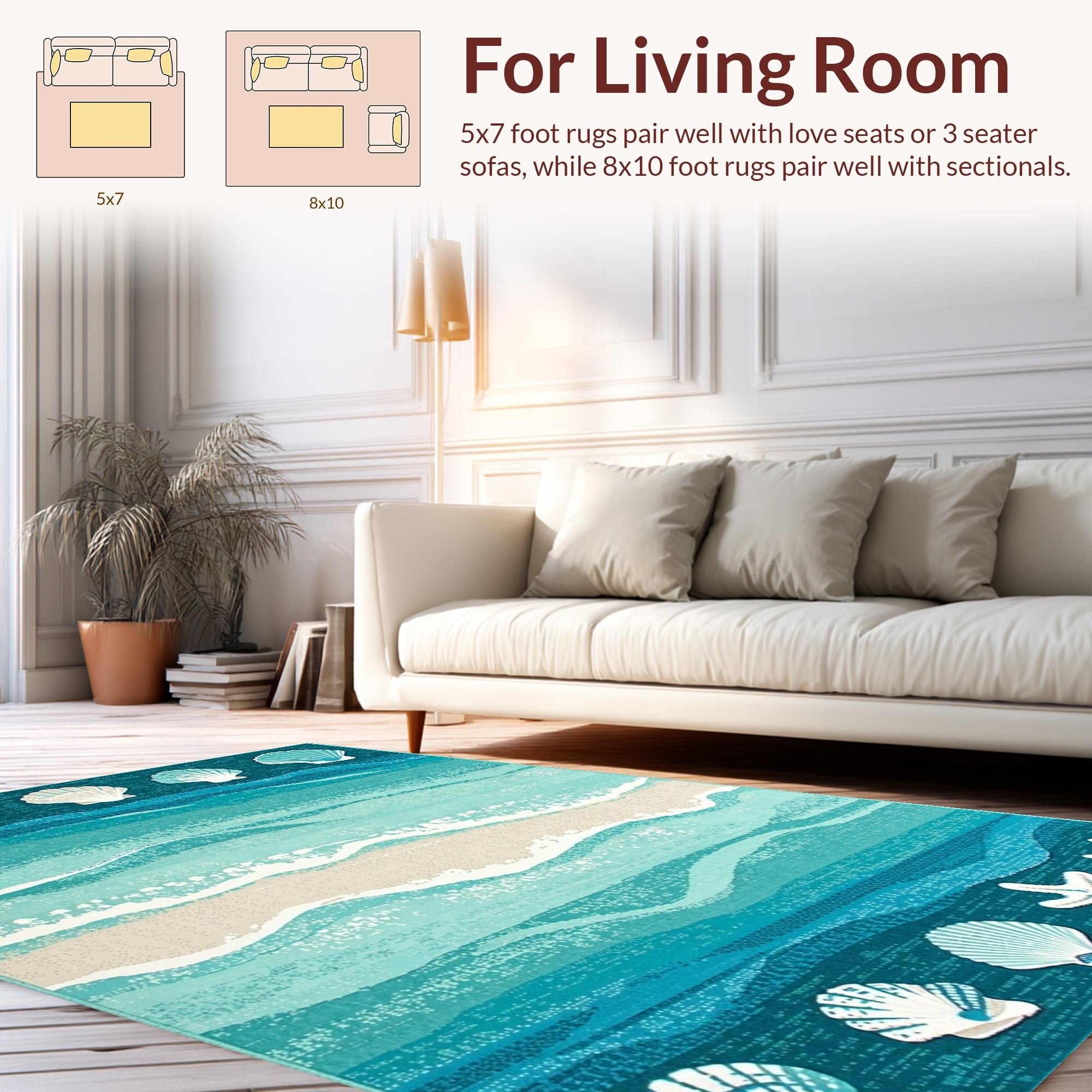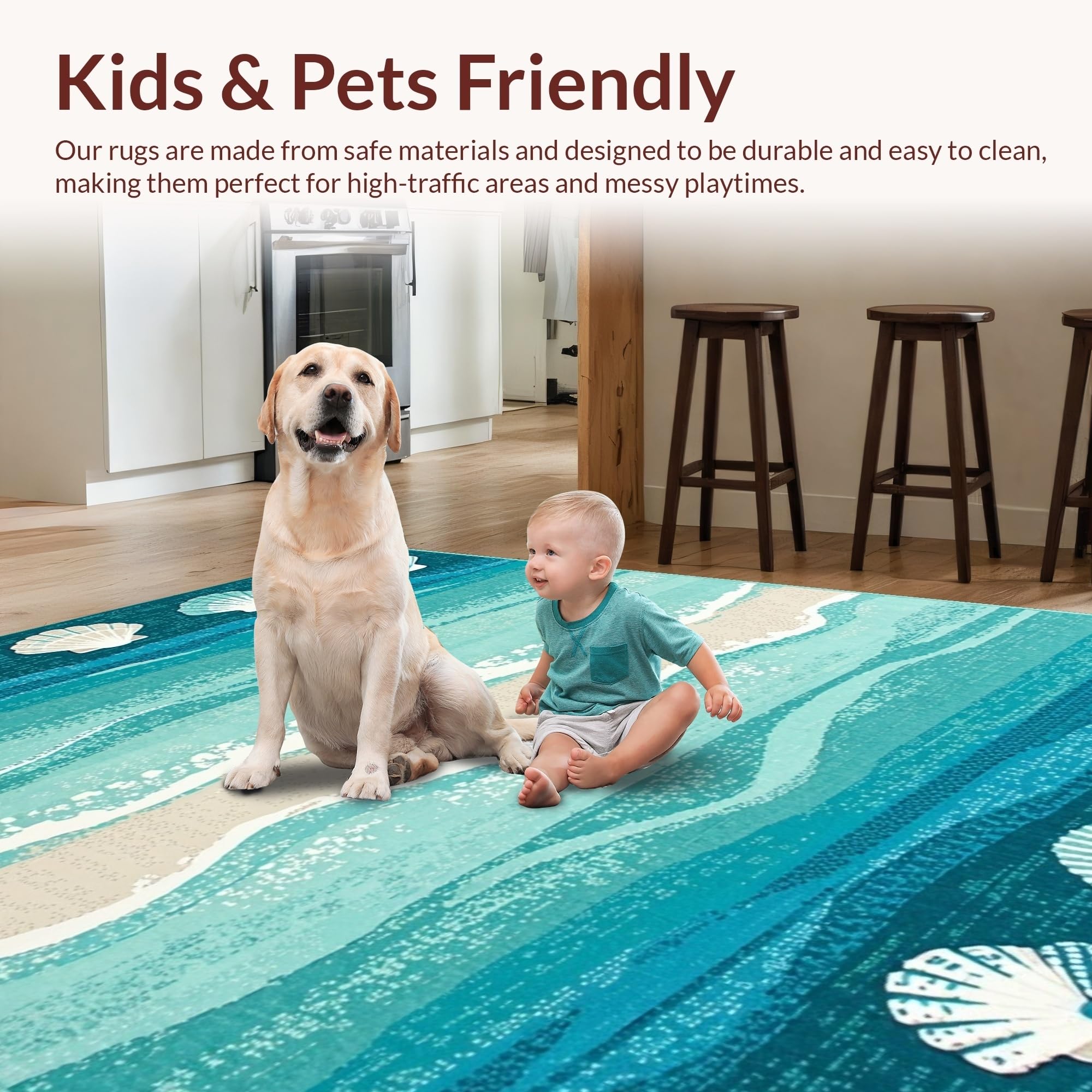 Ultra Soft Area Rug, Non Slip, Stain Resistant, Washable Area Rugs for Living Room, Bedroom, Whimsical Nautical Plush Comfort(Blue) Overview: