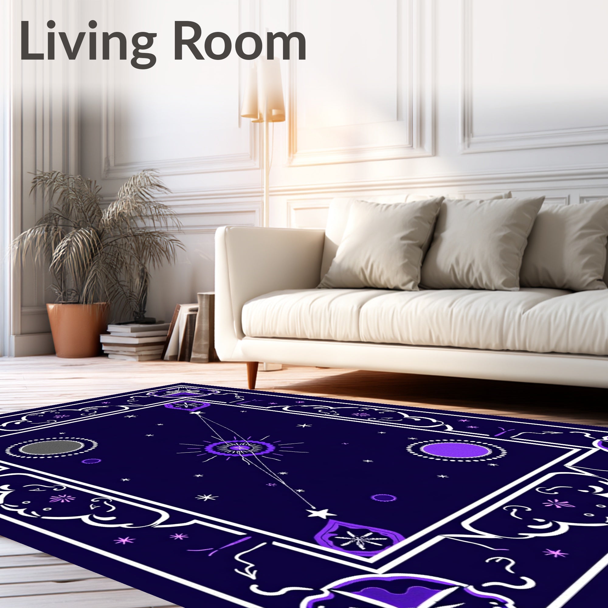 Ultra Soft Area Rug, Non Slip, Stain Resistant, Washable Area Rugs for Living Room, Bedroom, Whimsical Nightfall Astrology Chart Magical Fantasy Illustration(Purple) Overview: