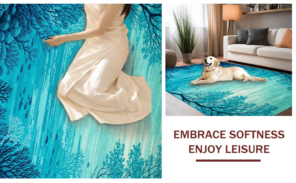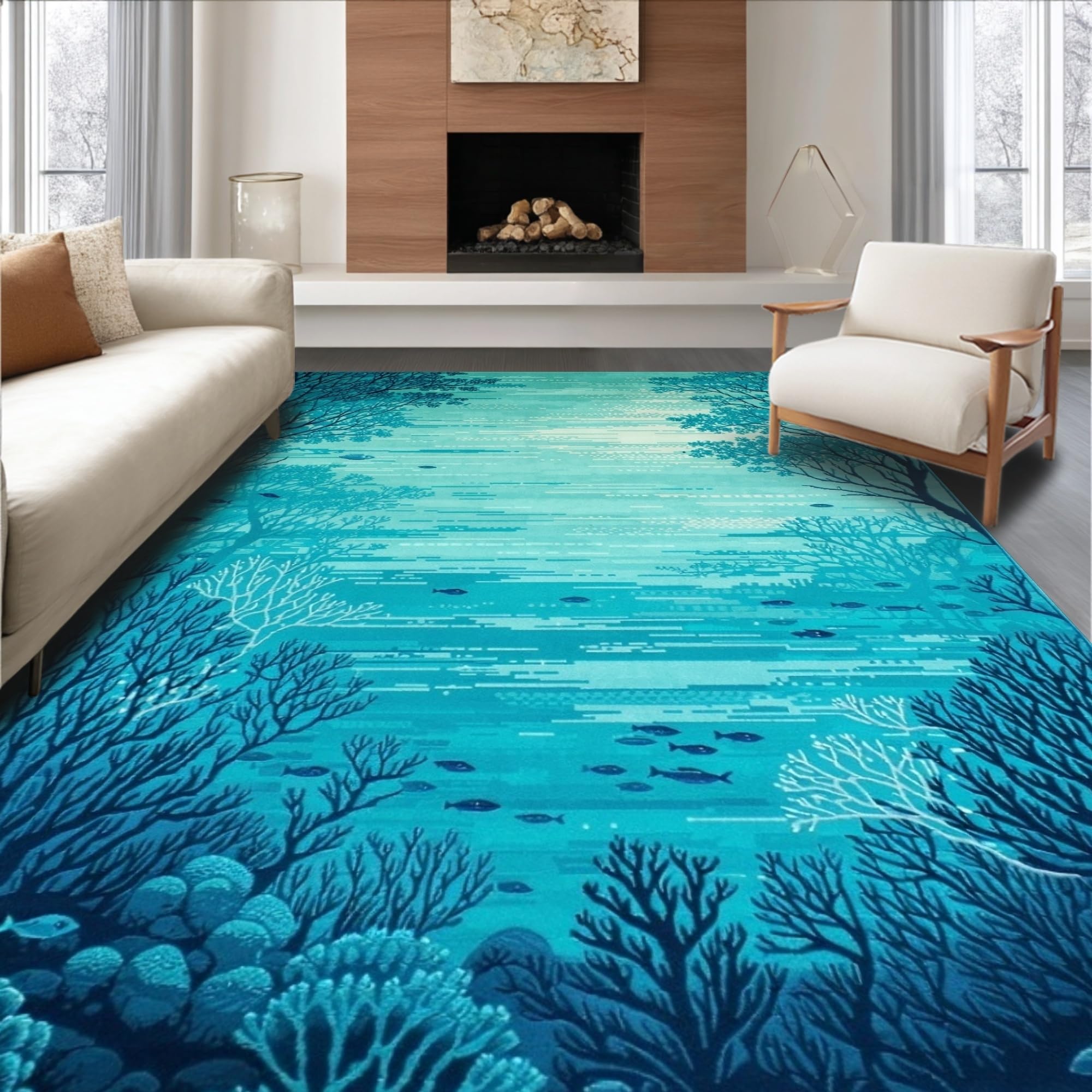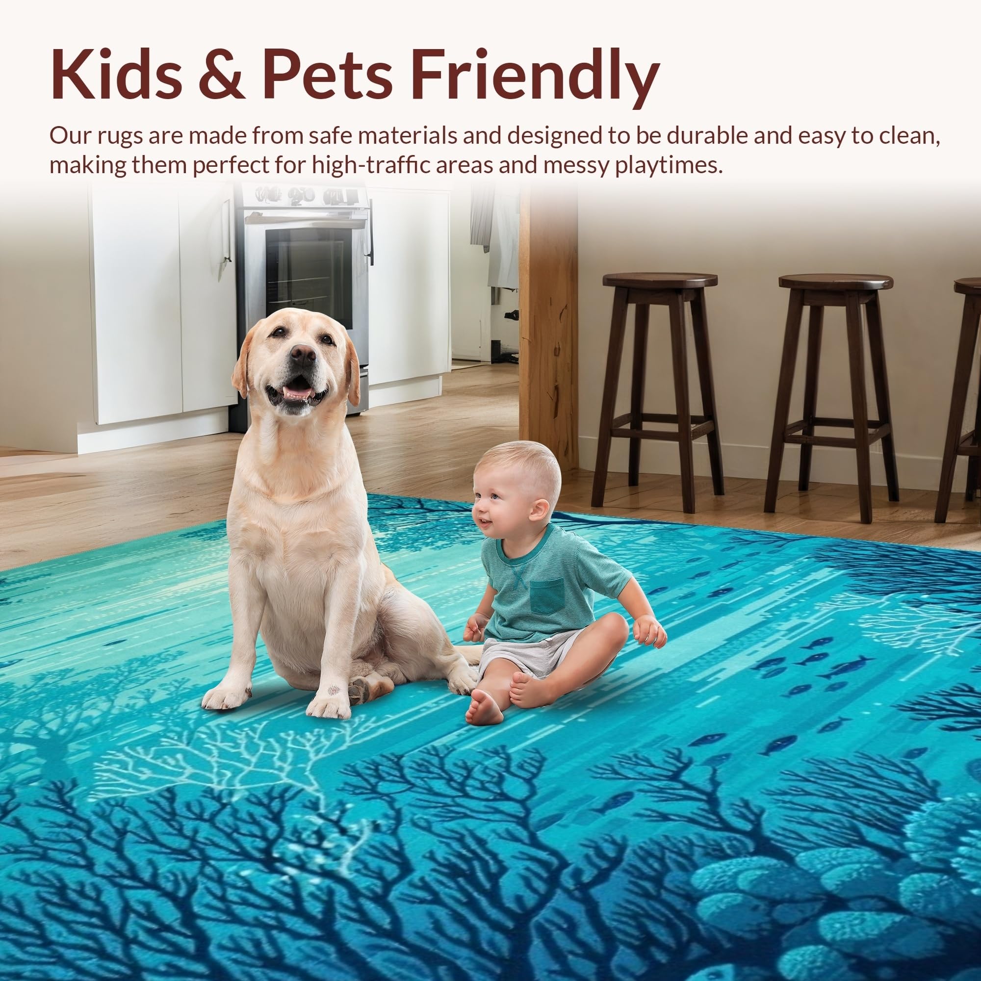 Ultra Soft Area Rug, Non Slip, Stain Resistant, Washable Area Rugs for Living Room, Bedroom, Whimsical Octopus Nautical Style(Blue) Overview: