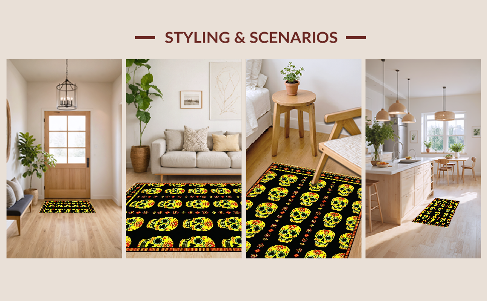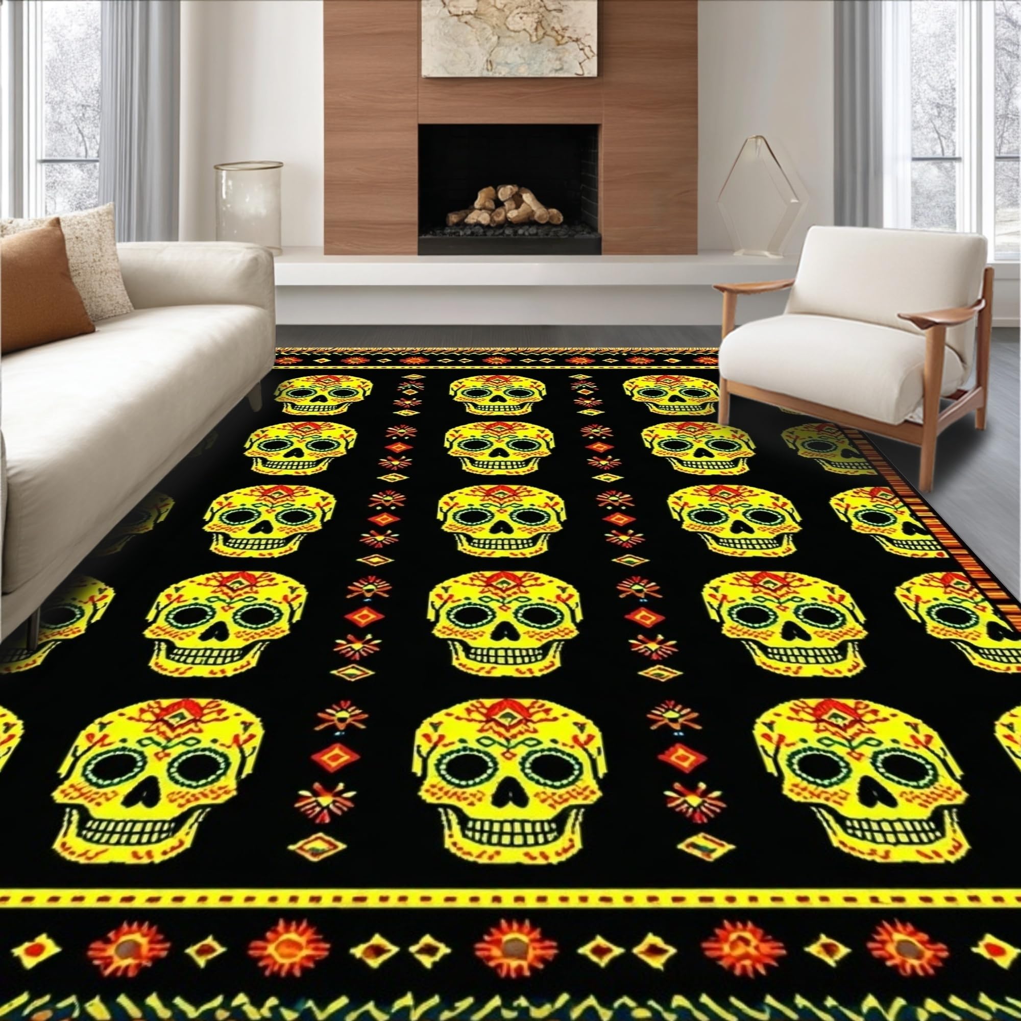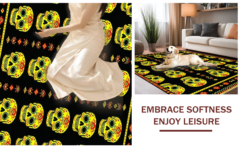 Ultra Soft Area Rug, Non Slip, Stain Resistant, Washable Area Rugs for Living Room, Bedroom, Whimsical Orange and Black Theme(Black) Overview: