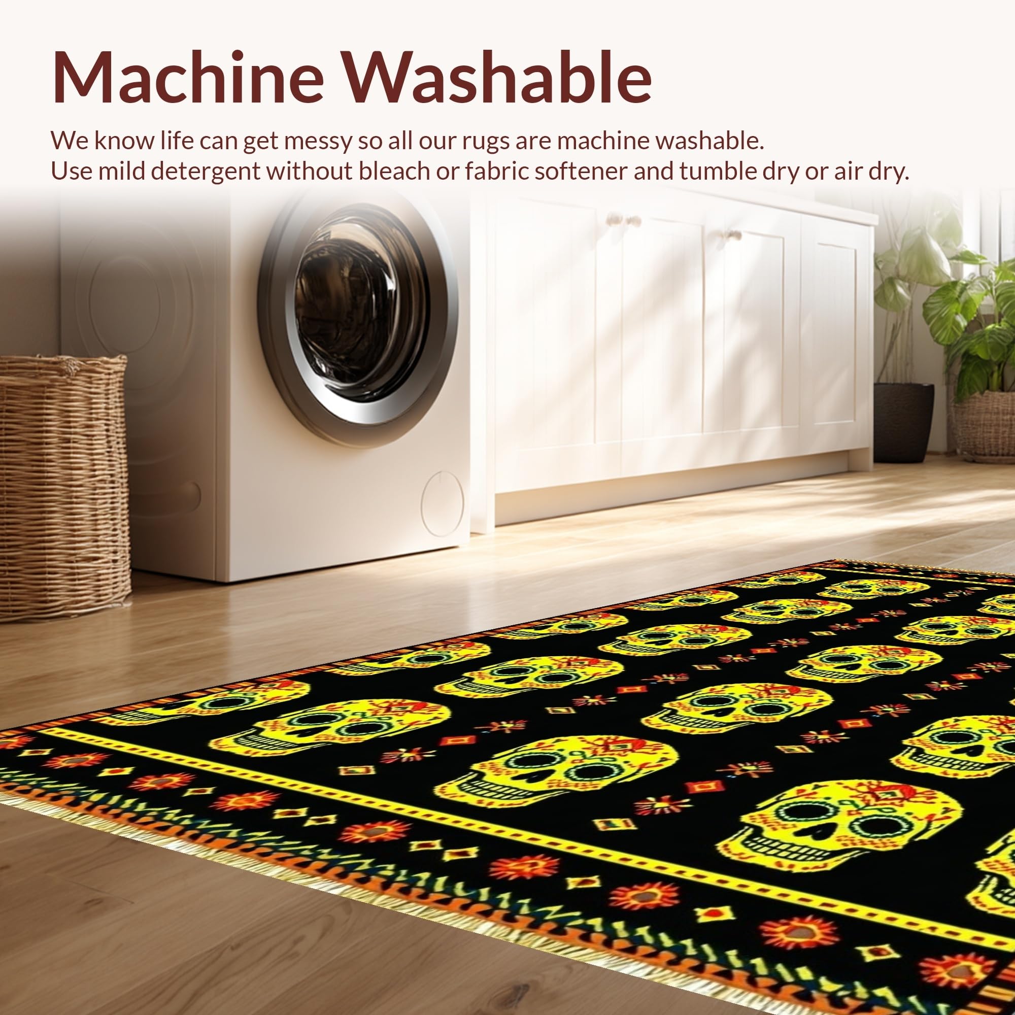- Machine Washable: Our rugs can be easily thrown in the wash machine.