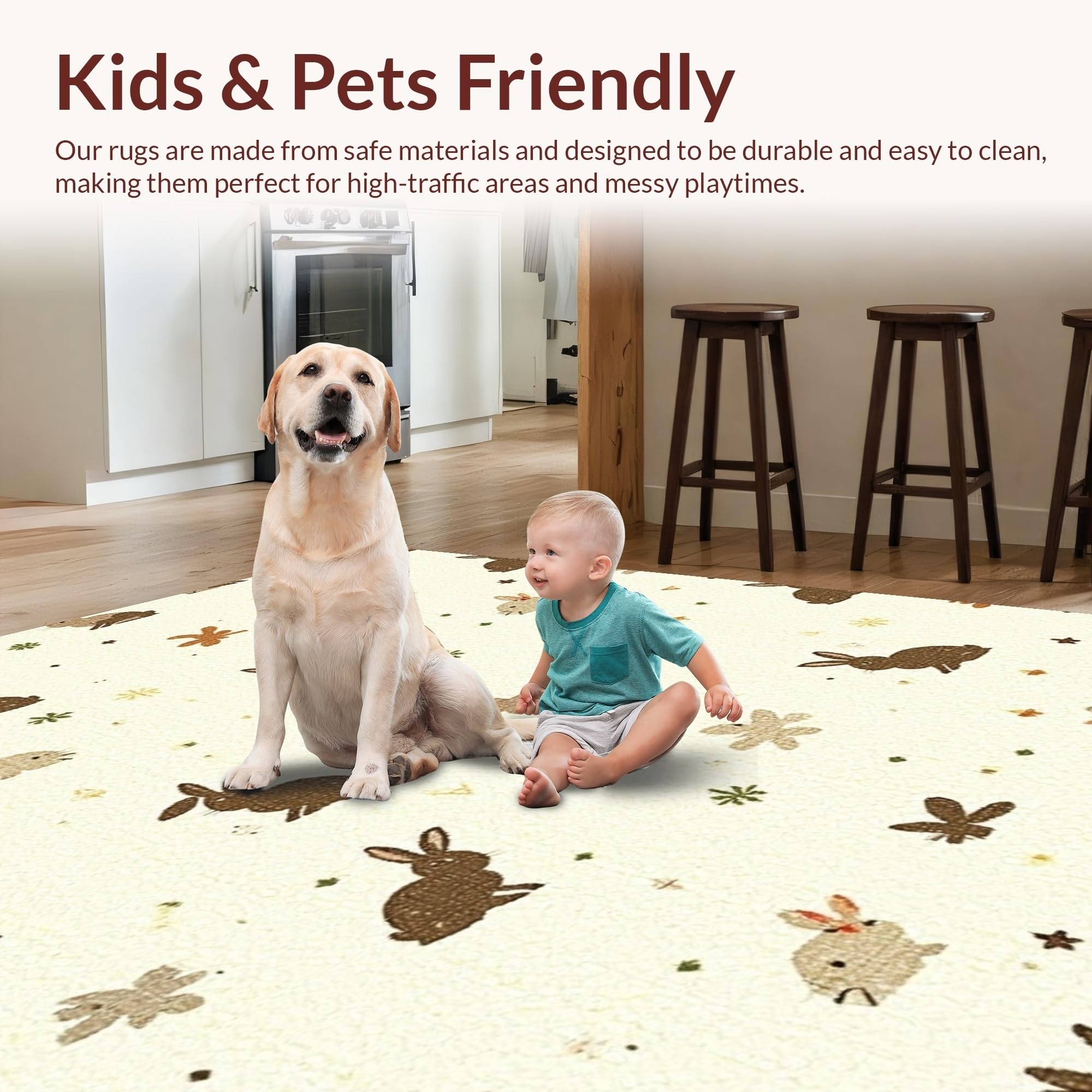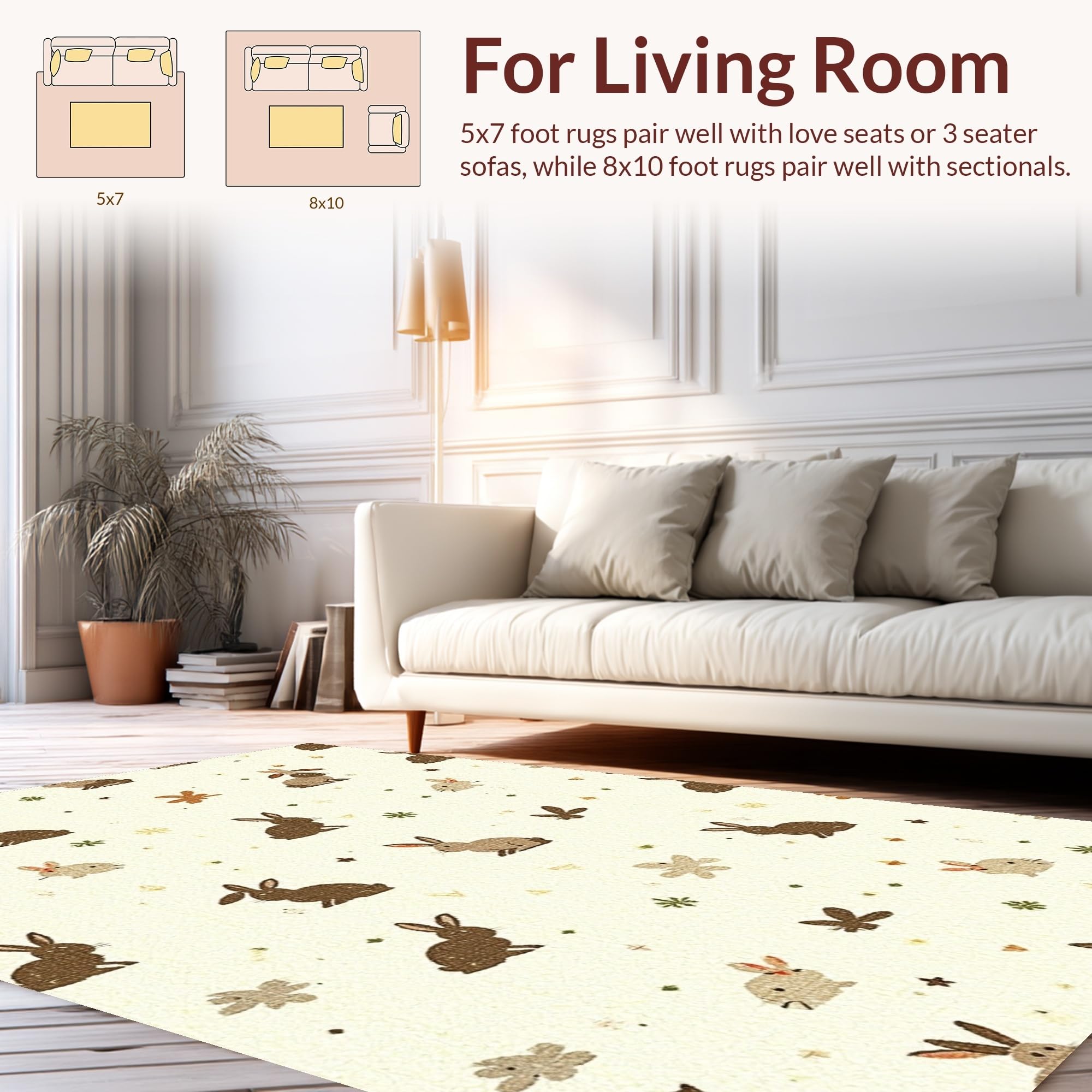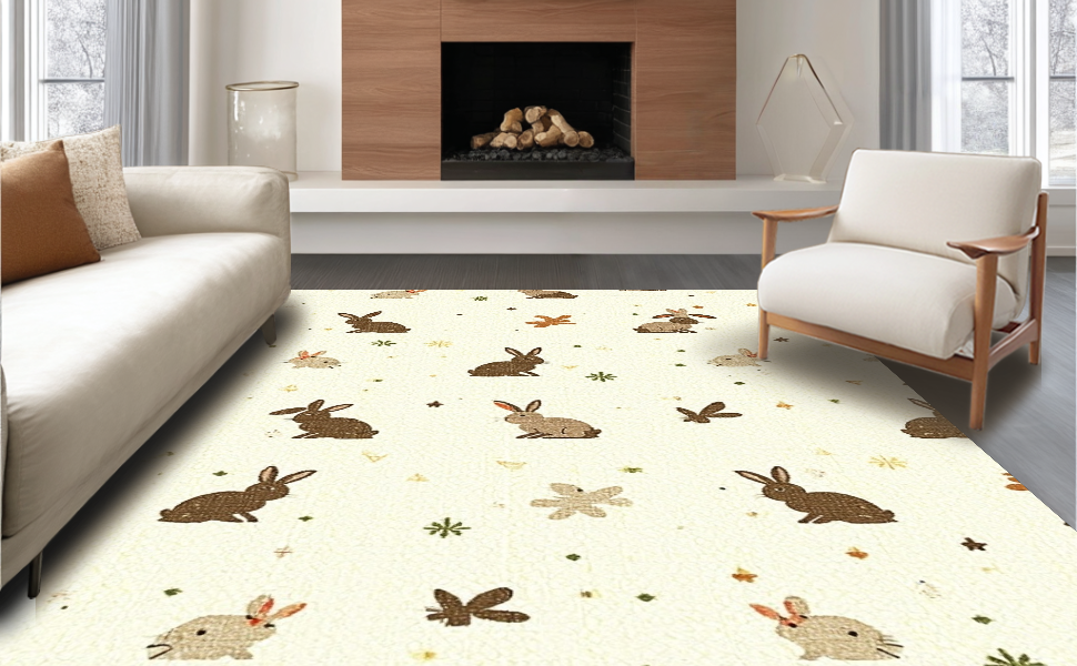 Ultra Soft Area Rug, Non Slip, Stain Resistant, Washable Area Rugs for Living Room, Bedroom, Whimsical Pastel Holiday Motif(Beige) Overview: