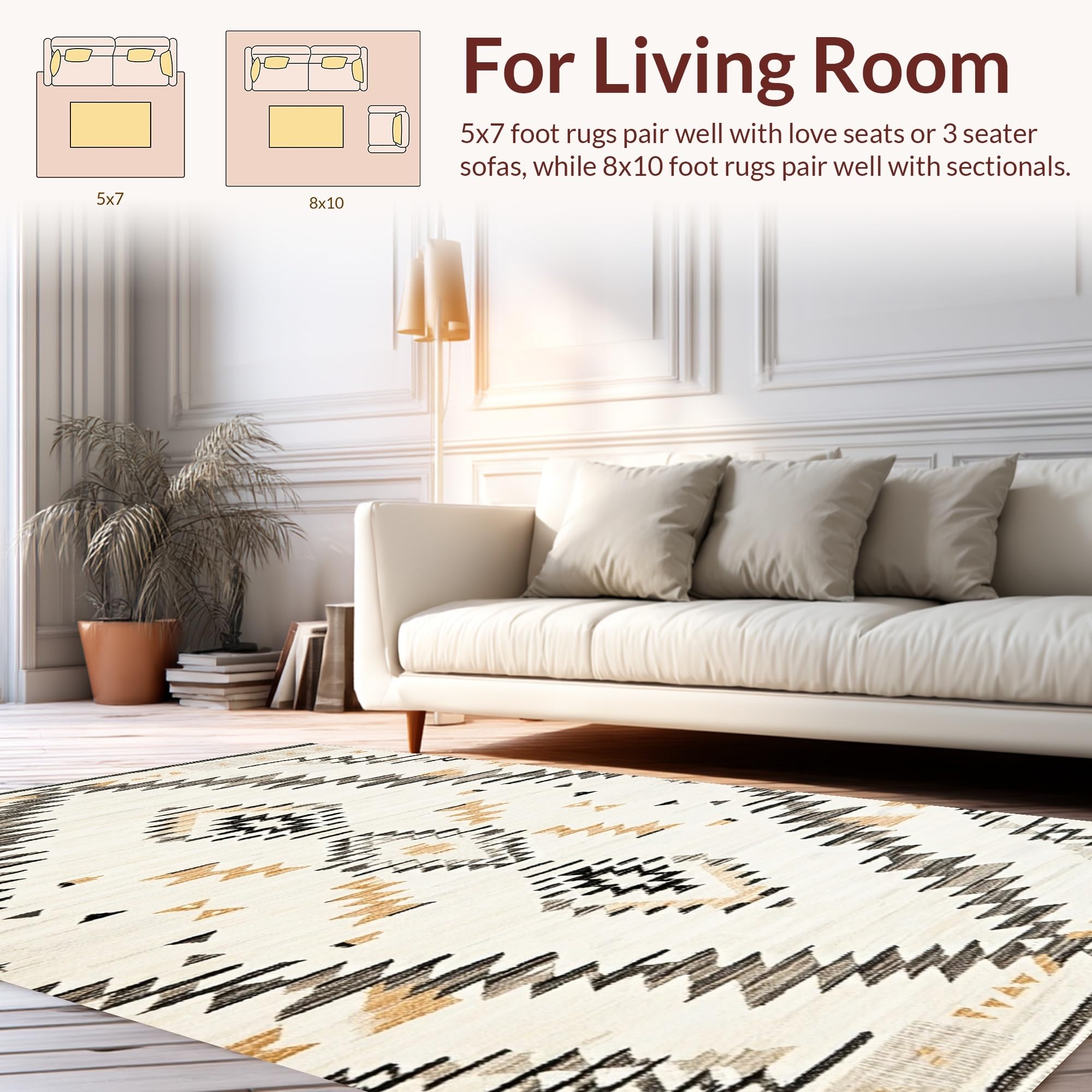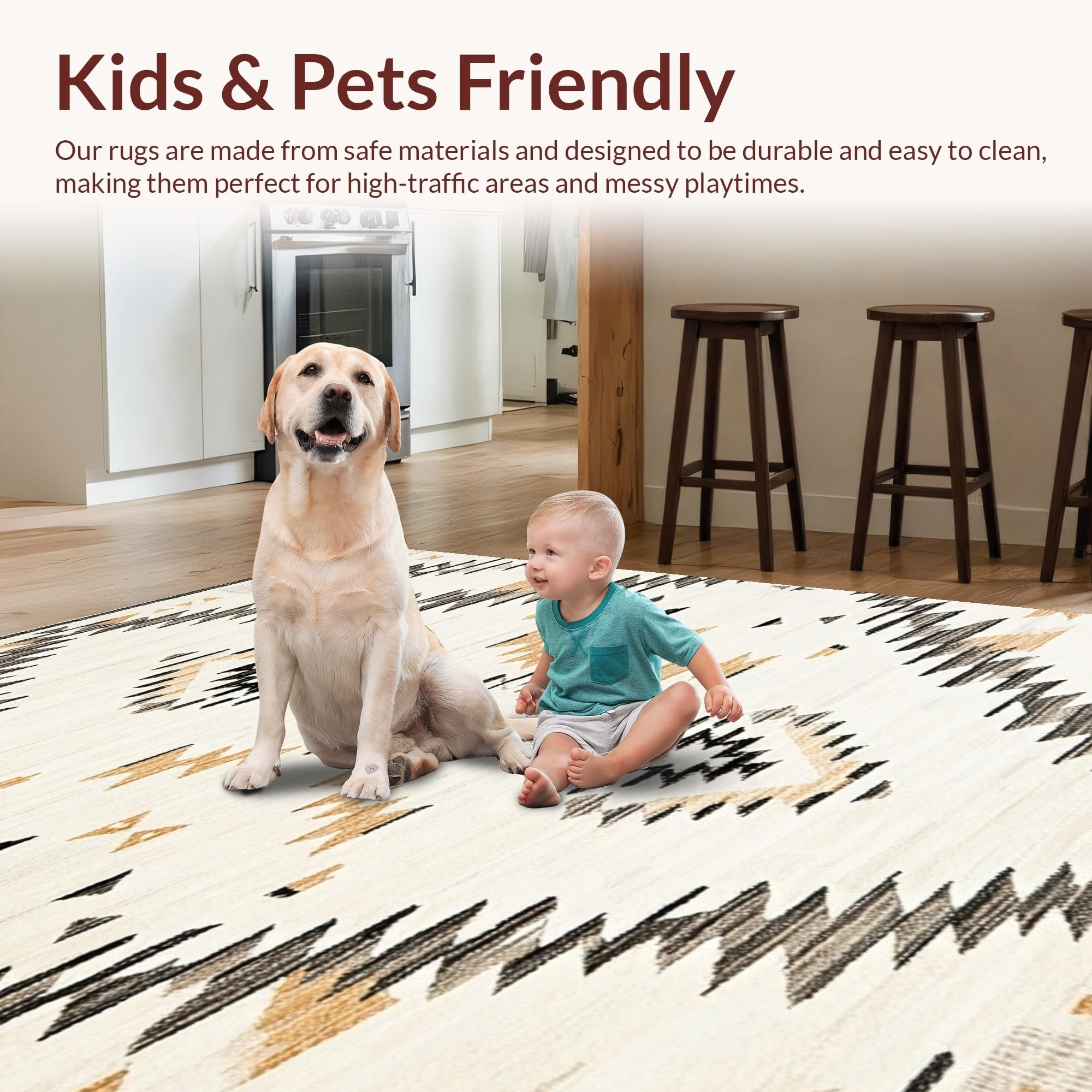 Ultra Soft Area Rug, Non Slip, Stain Resistant, Washable Area Rugs for Living Room, Bedroom, Whimsical Pastel Lattice Arrangement(Beige) Overview: