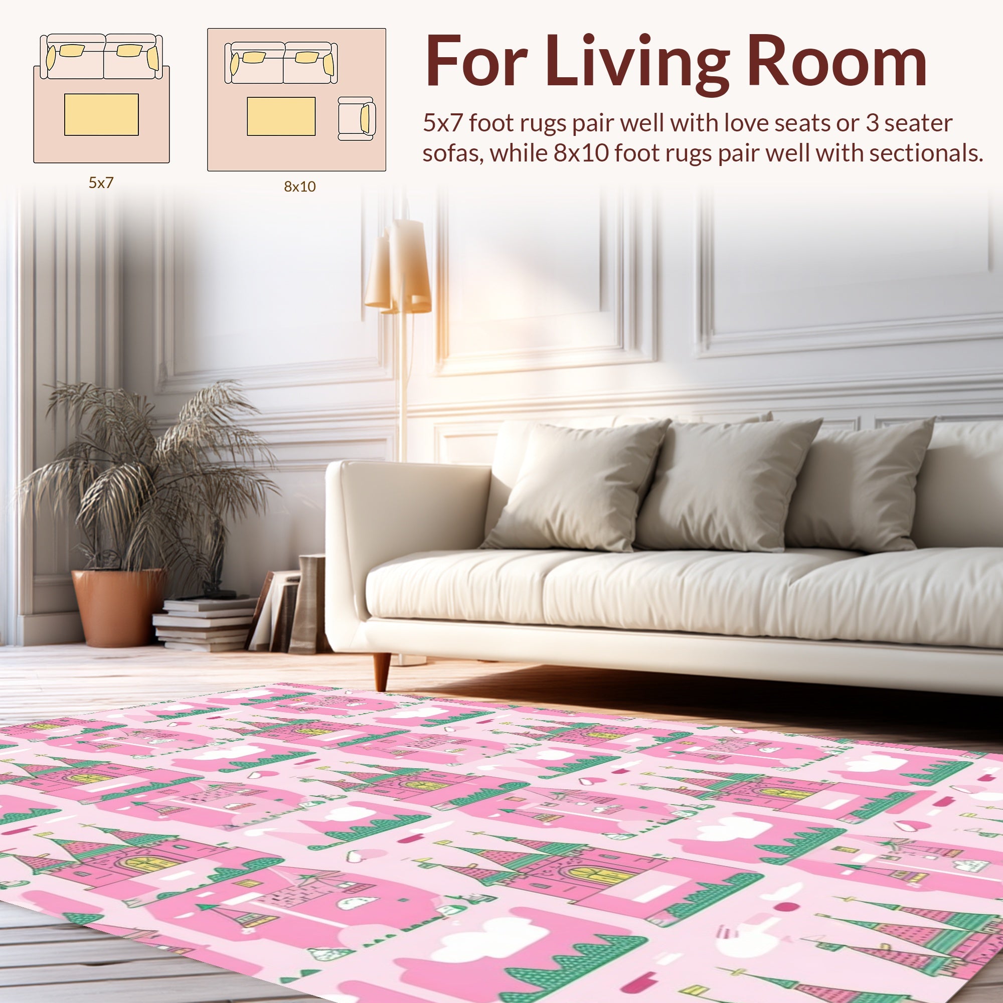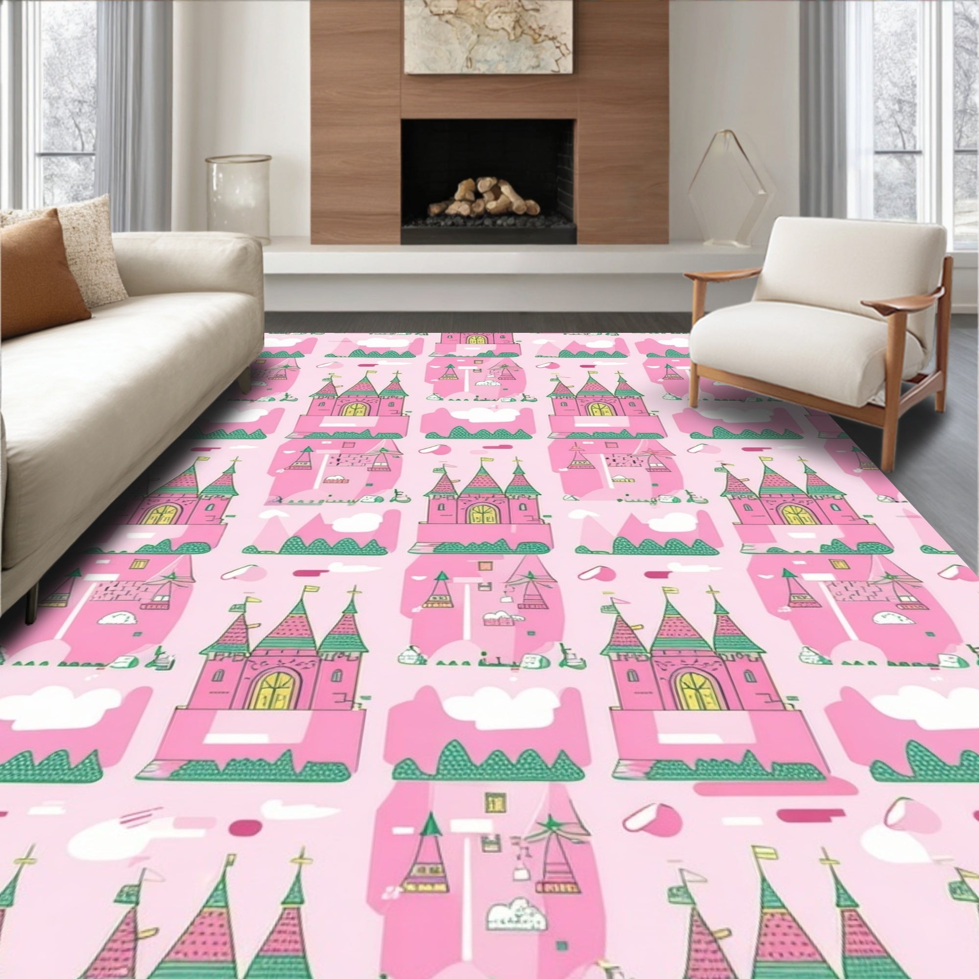 Flatwoven High Traffic Area Rug, Whimsical Pink Fantasy, Non Slip, Stain Resistant, Washable Area Rugs for Living Room, Bedroom (Pink) Overview: