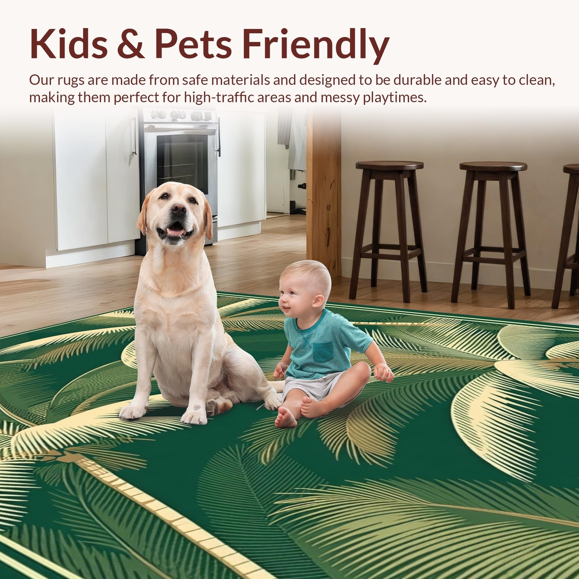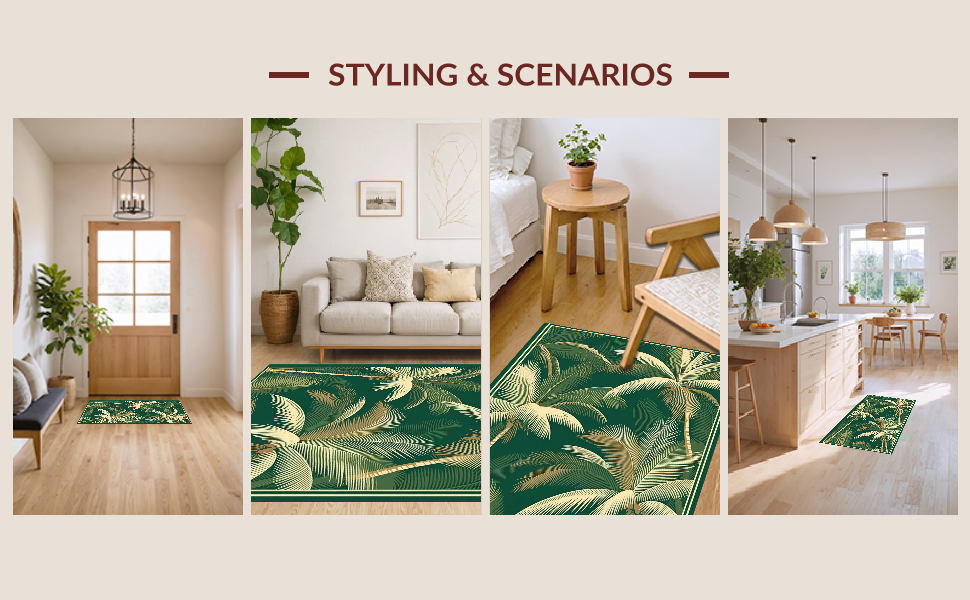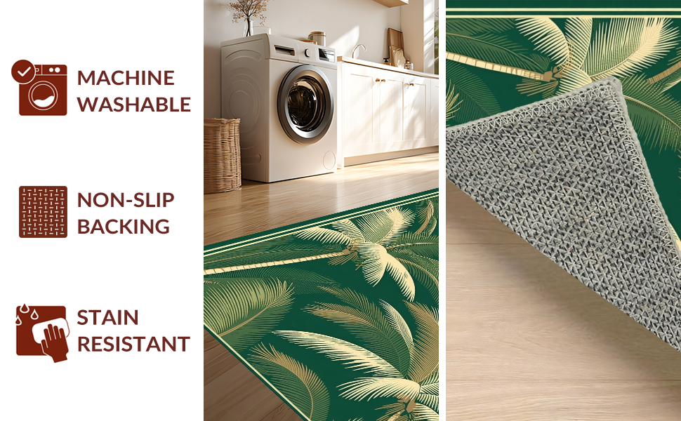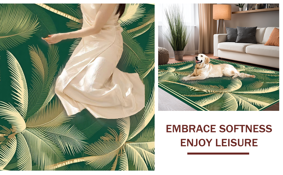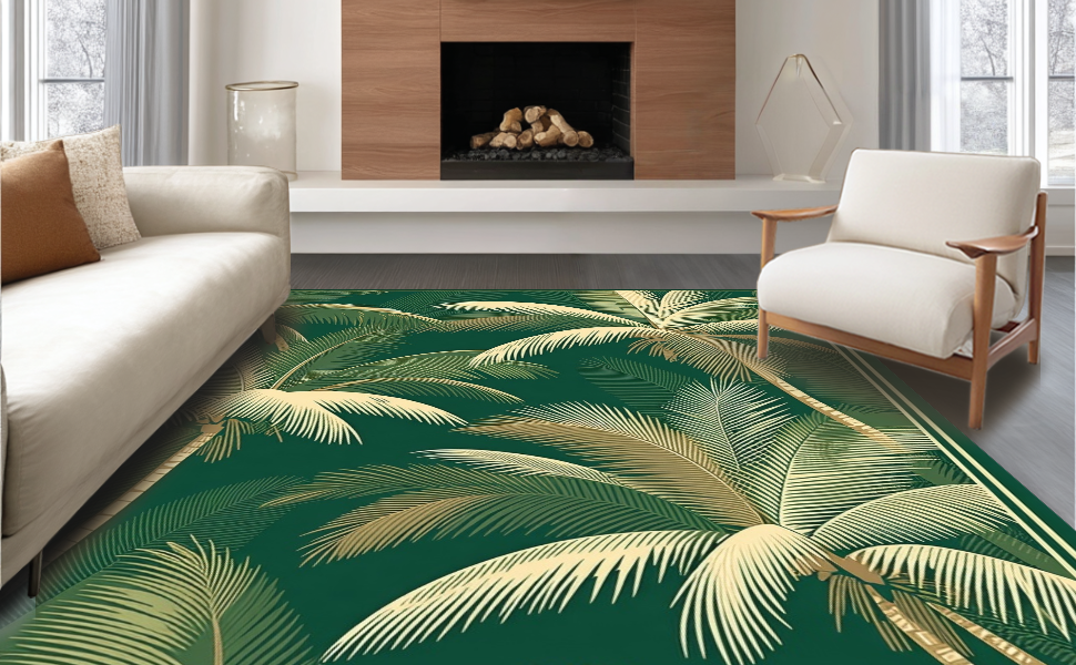 Ultra Soft Area Rug, Non Slip, Stain Resistant, Washable Area Rugs for Living Room, Bedroom, Whimsical Retro Nature Illustration(Green) Overview: