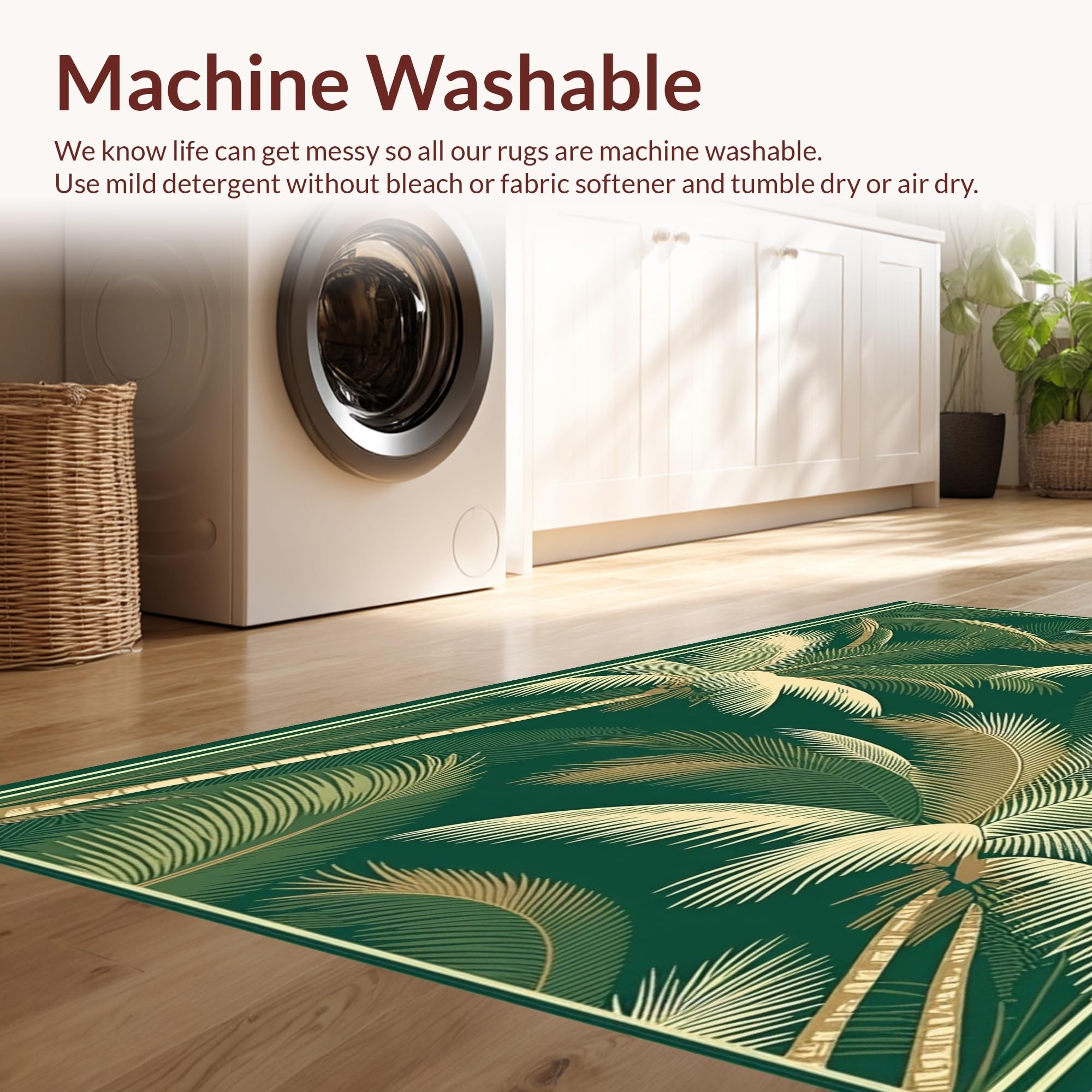 - Machine Washable: Our rugs can be easily thrown in the wash machine.