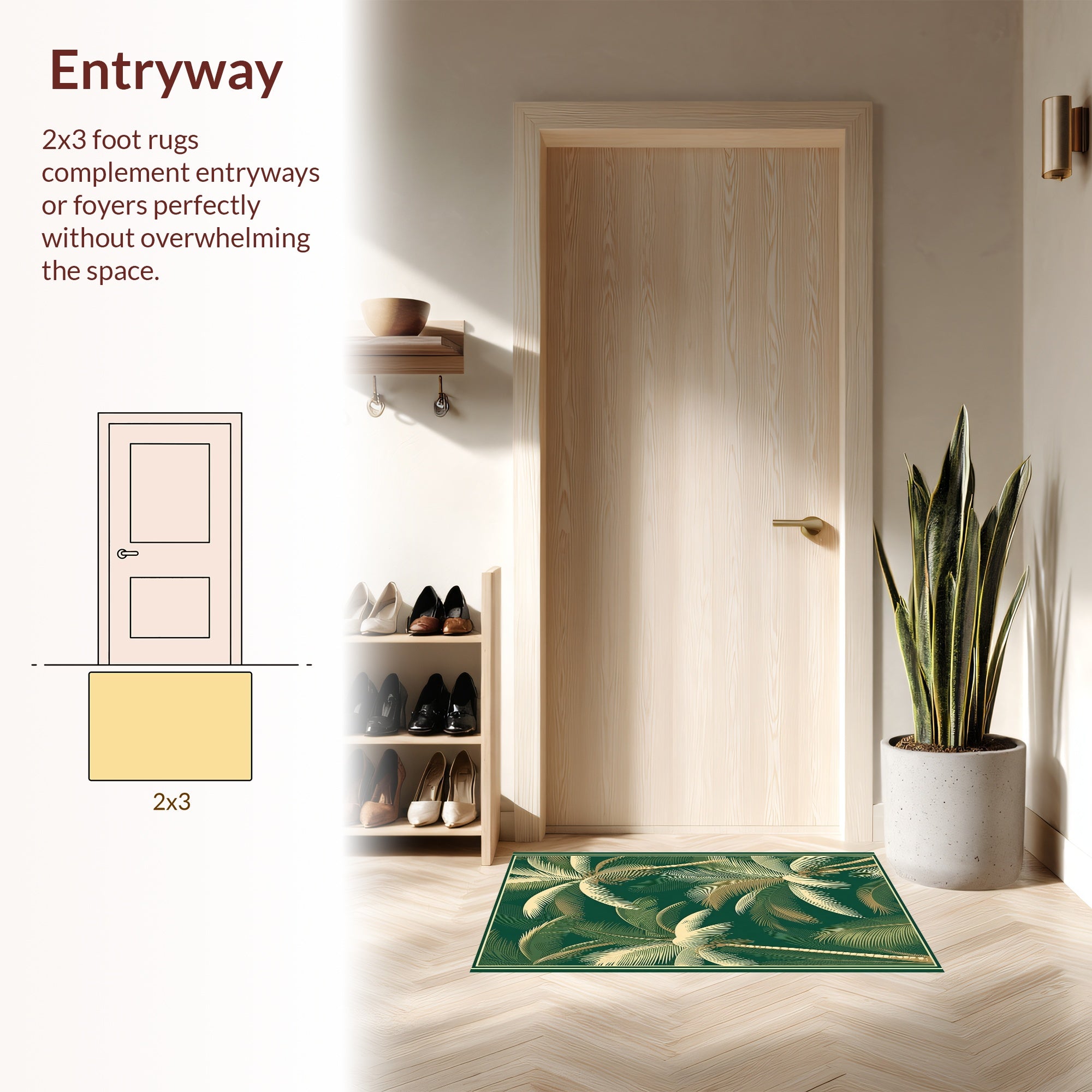 Flatwoven High Traffic Area Rug, Whimsical Retro Nature Illustration, Non Slip, Stain Resistant, Washable Area Rugs for Living Room, Bedroom (Green) Overview: