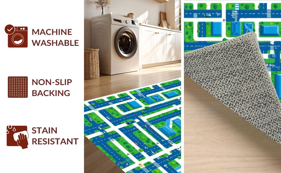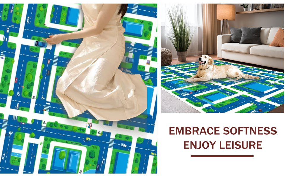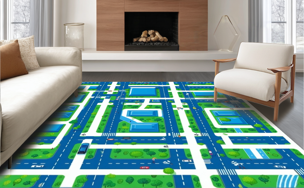 Ultra Soft Area Rug, Non Slip, Stain Resistant, Washable Area Rugs for Living Room, Bedroom, Whimsical Road Traffic Exploration Mat(Blue) Overview:
