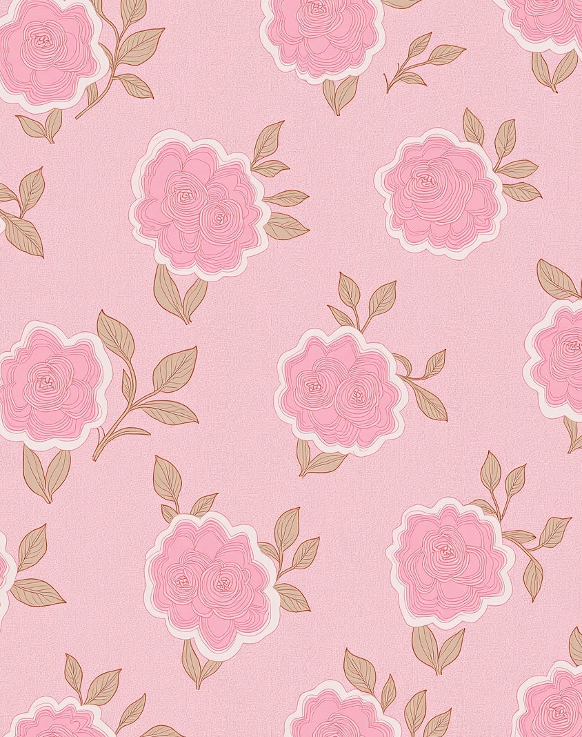 Whimsical Rose Garden Motif with Scattered Blossom and Leaf Accents(Pink)