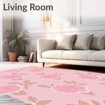 Ultra Soft Area Rug, Non Slip, Stain Resistant, Washable Area Rugs for Living Room, Bedroom, Whimsical Rose Garden Motif with Scattered Blossom and Leaf Accents(Pink) Overview: