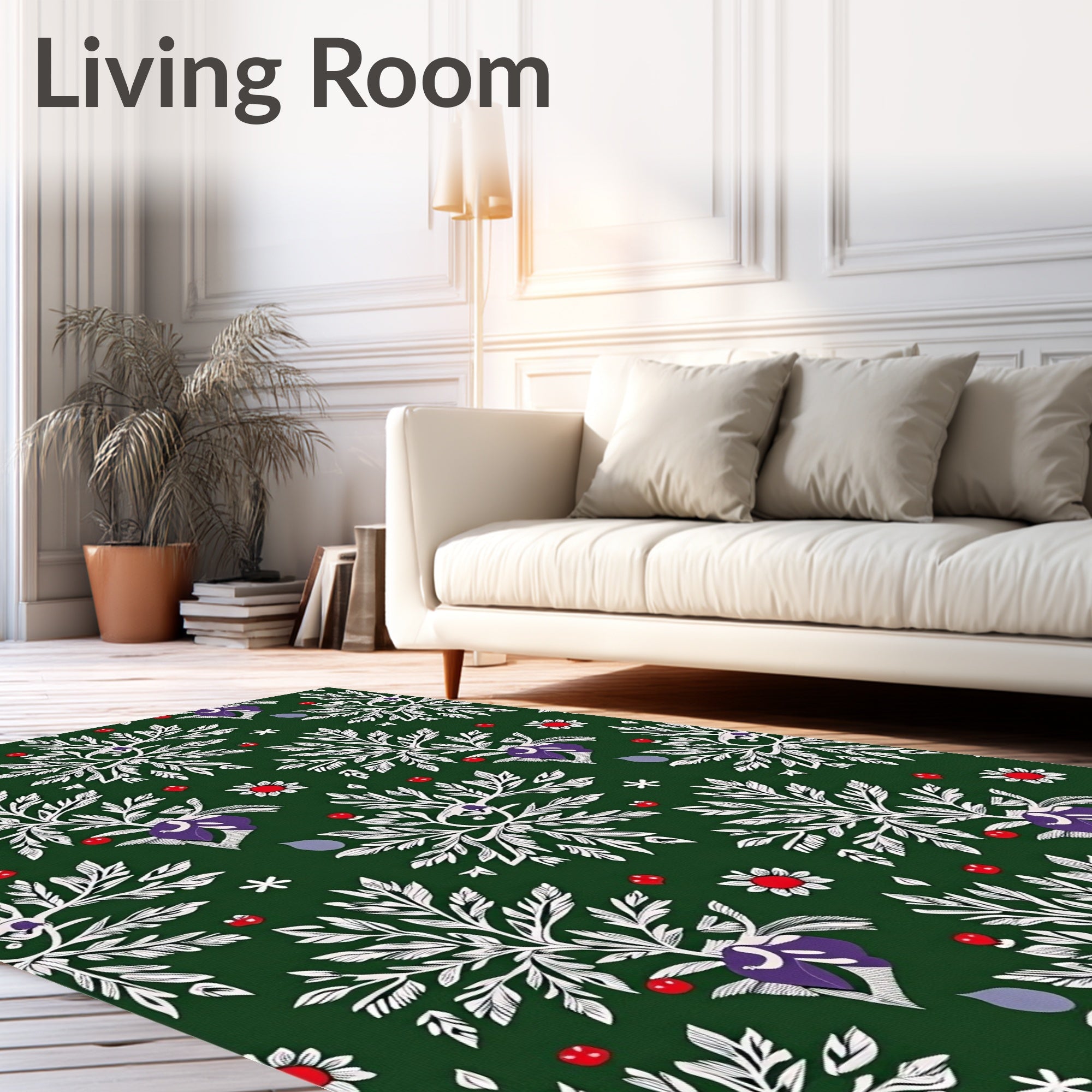 Ultra Soft Area Rug, Non Slip, Stain Resistant, Washable Area Rugs for Living Room, Bedroom, Whimsical Snowy Pinecone Evergreen Bough Festive Flooring Accent(Green) Overview: