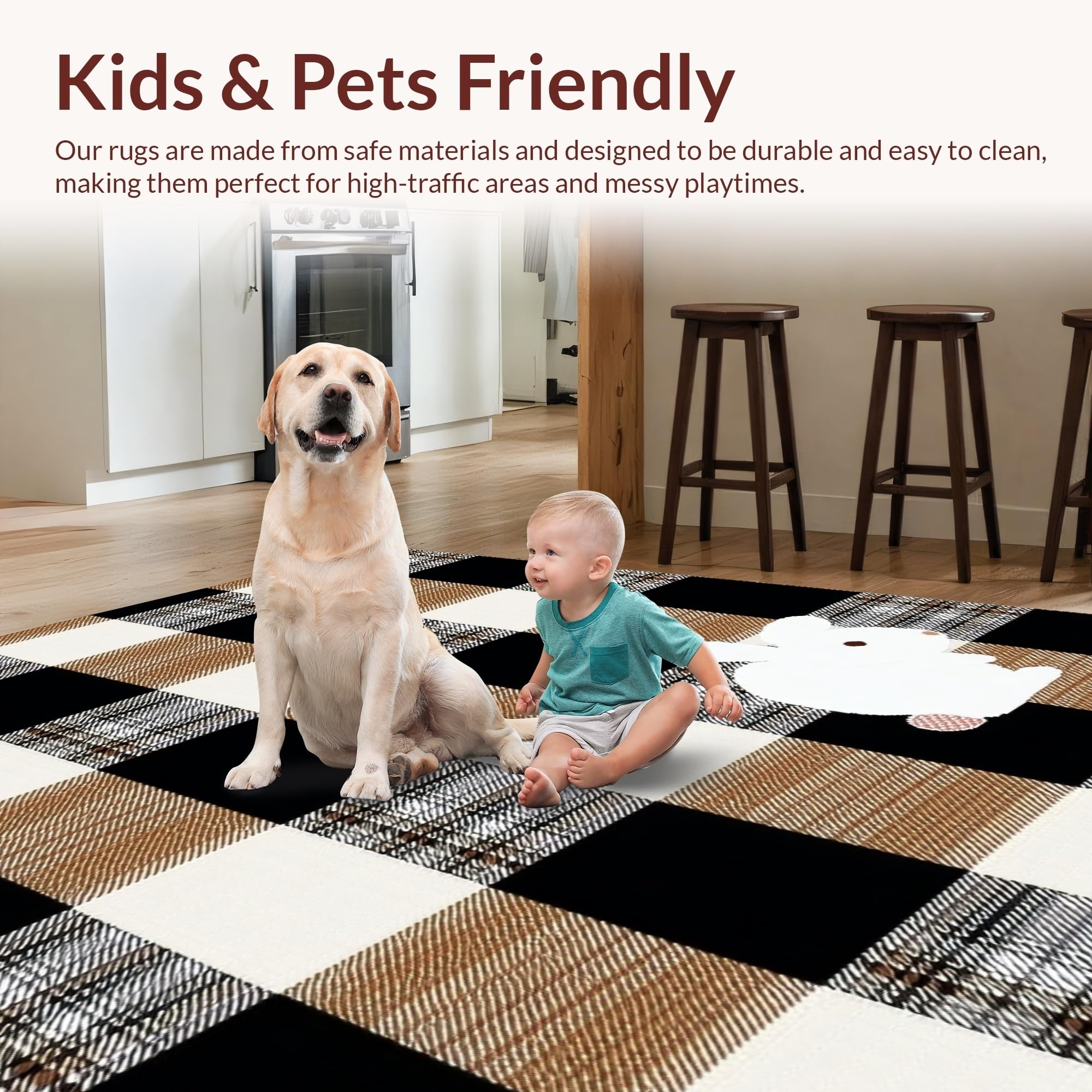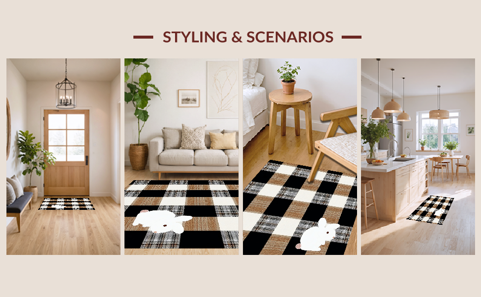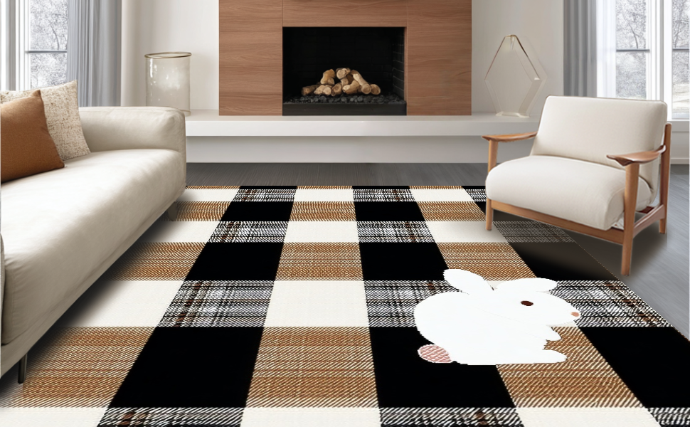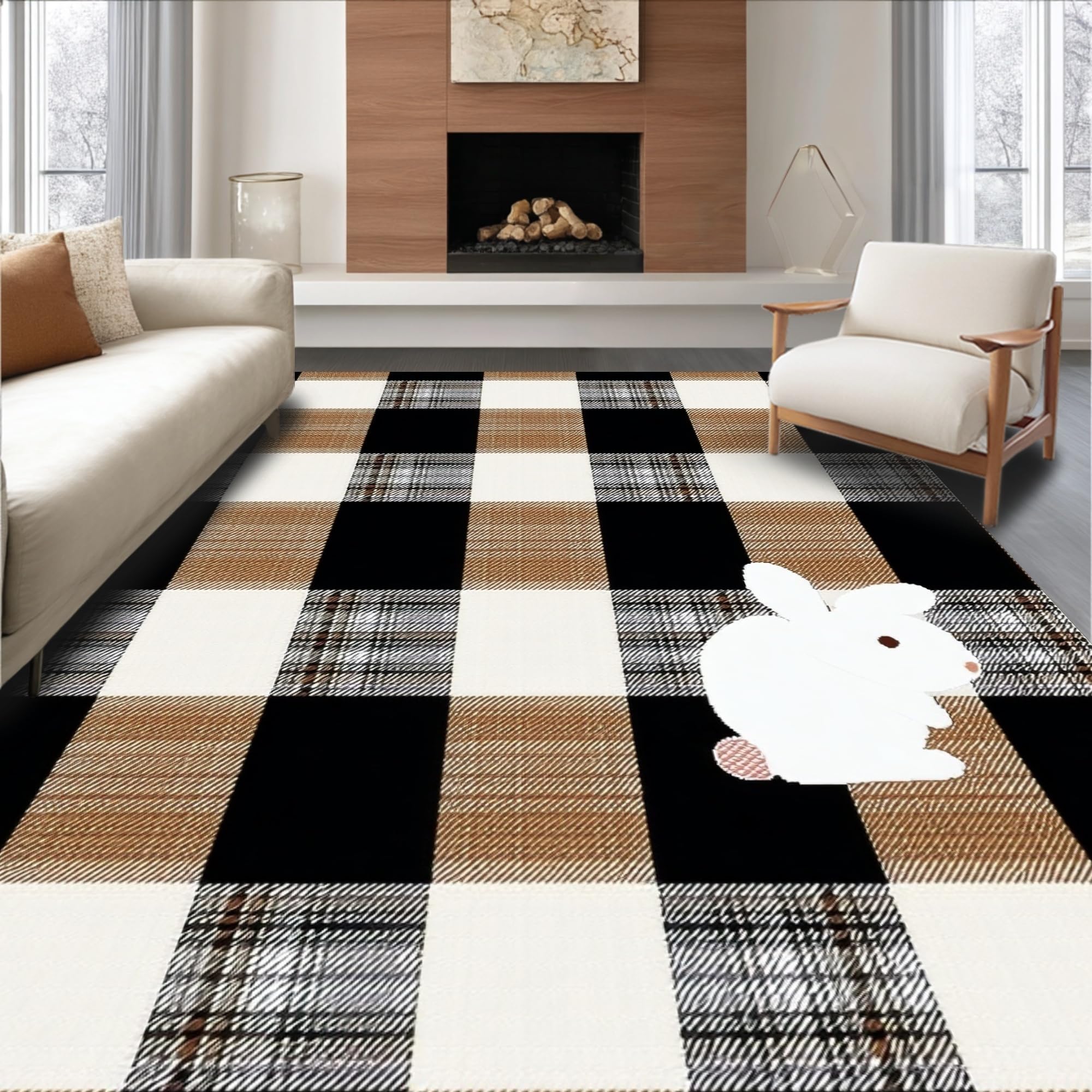 Ultra Soft Area Rug, Non Slip, Stain Resistant, Washable Area Rugs for Living Room, Bedroom, Whimsical Spring Bunny Pattern Delight(Beige) Overview: