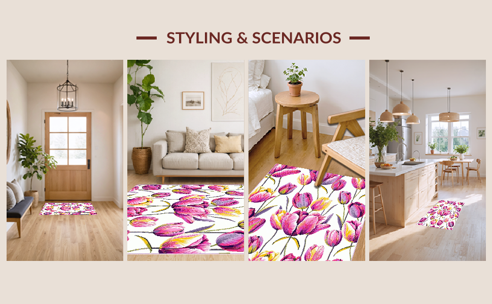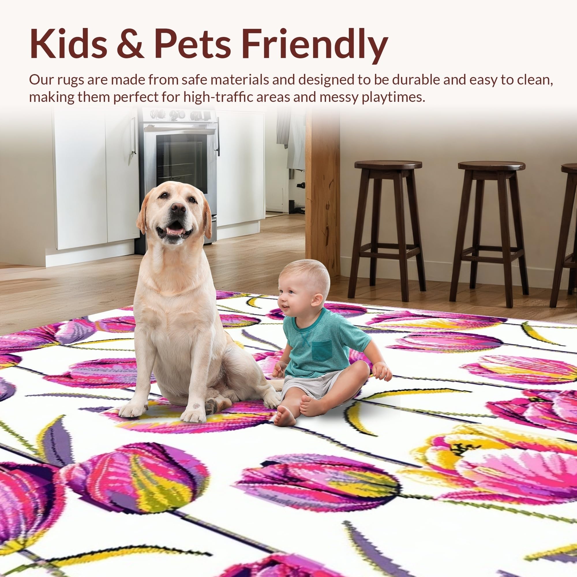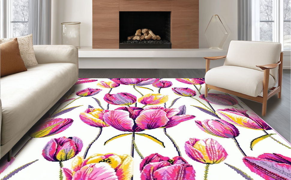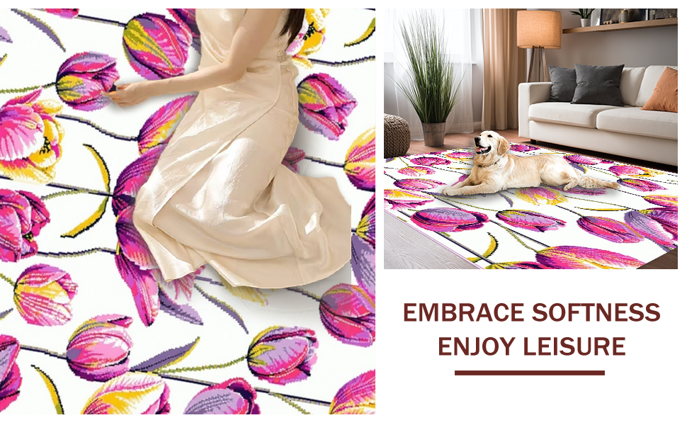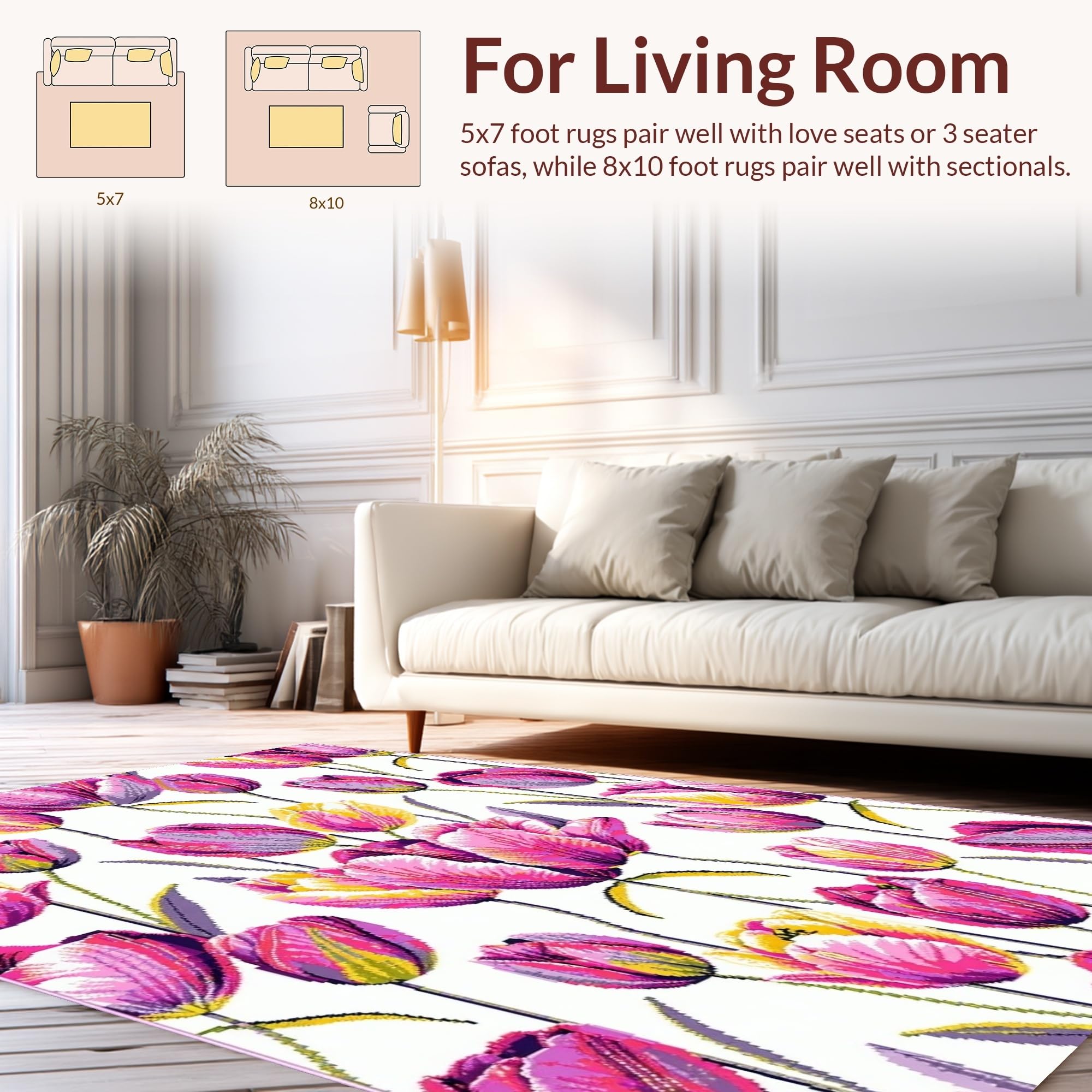 Ultra Soft Area Rug, Non Slip, Stain Resistant, Washable Area Rugs for Living Room, Bedroom, Whimsical Spring Garden Vibe(Pink) Overview:
