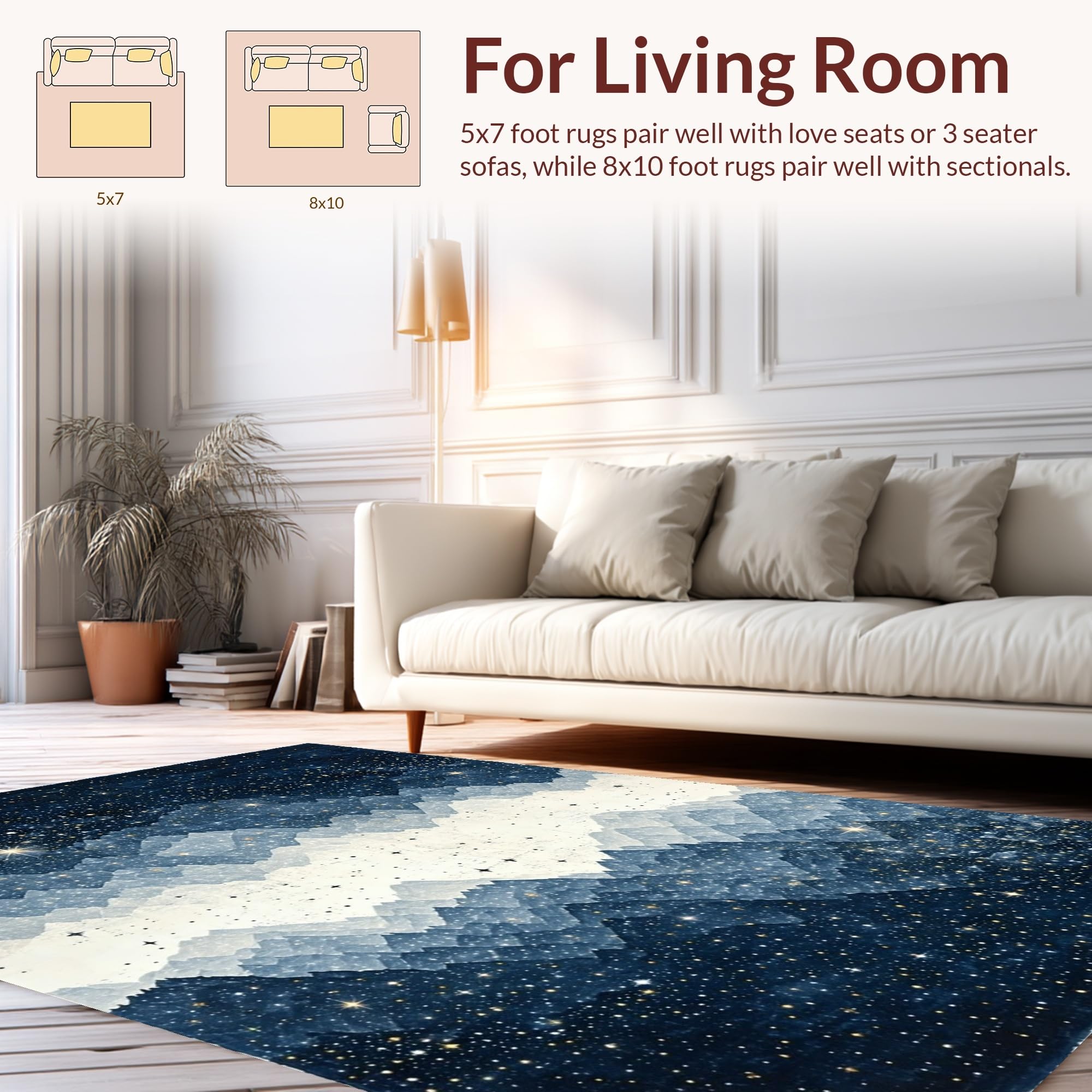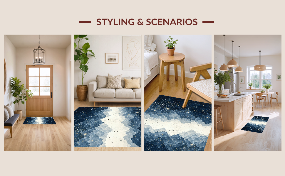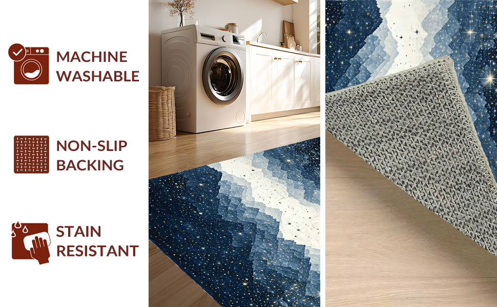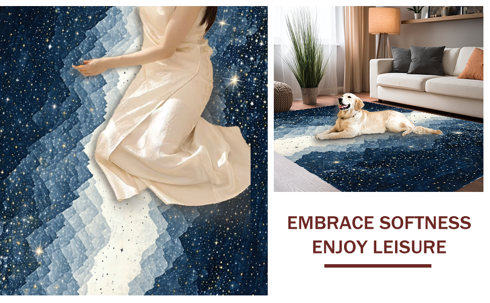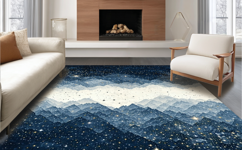 Ultra Soft Area Rug, Non Slip, Stain Resistant, Washable Area Rugs for Living Room, Bedroom, Whimsical Starry Night Aesthetic(Blue) Overview: