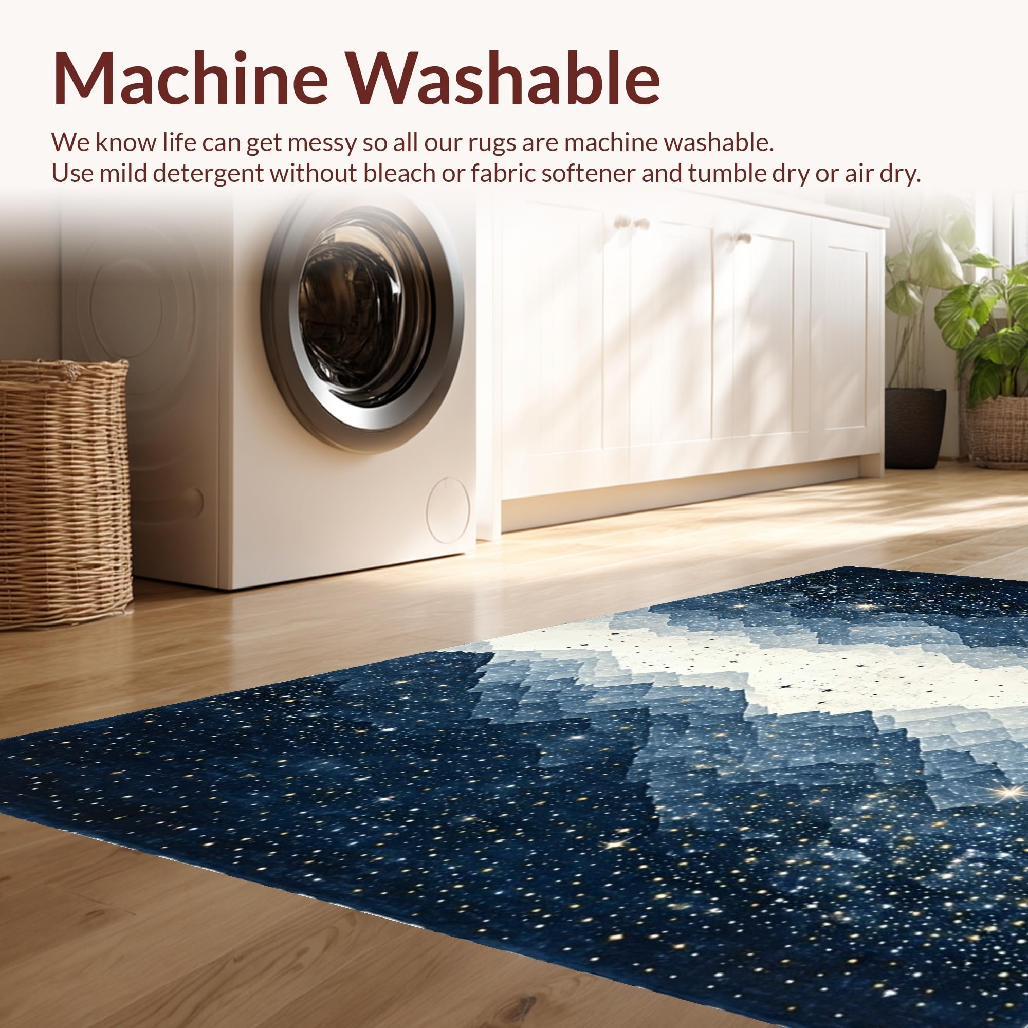 - Machine Washable: Our rugs can be easily thrown in the wash machine.