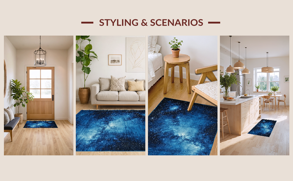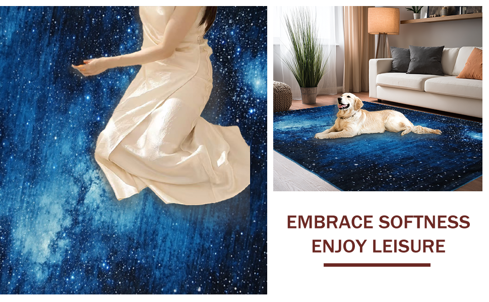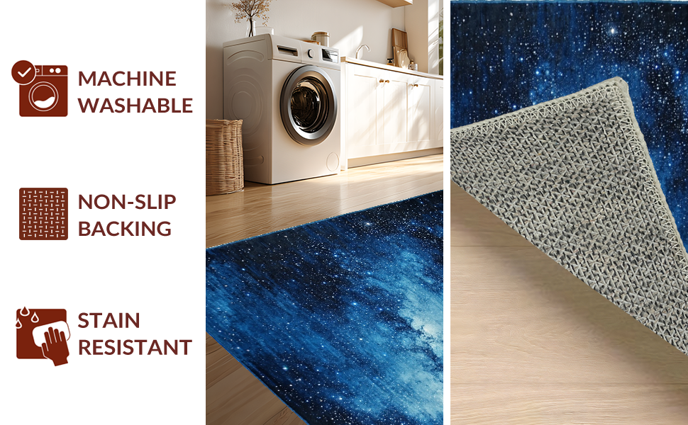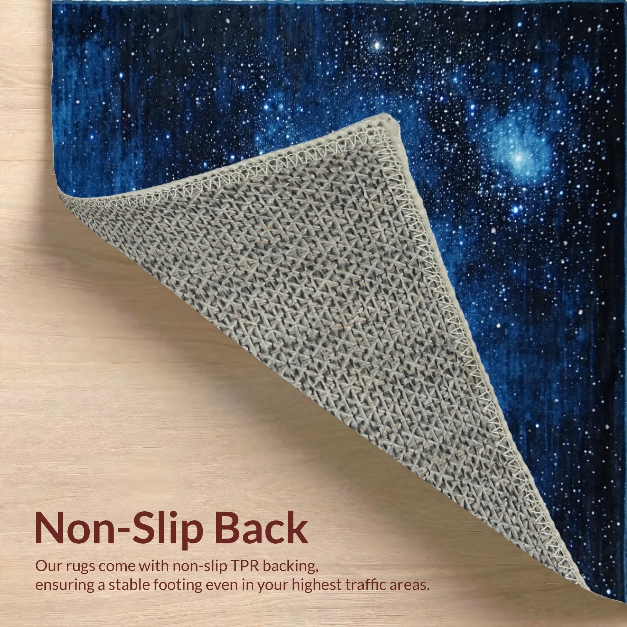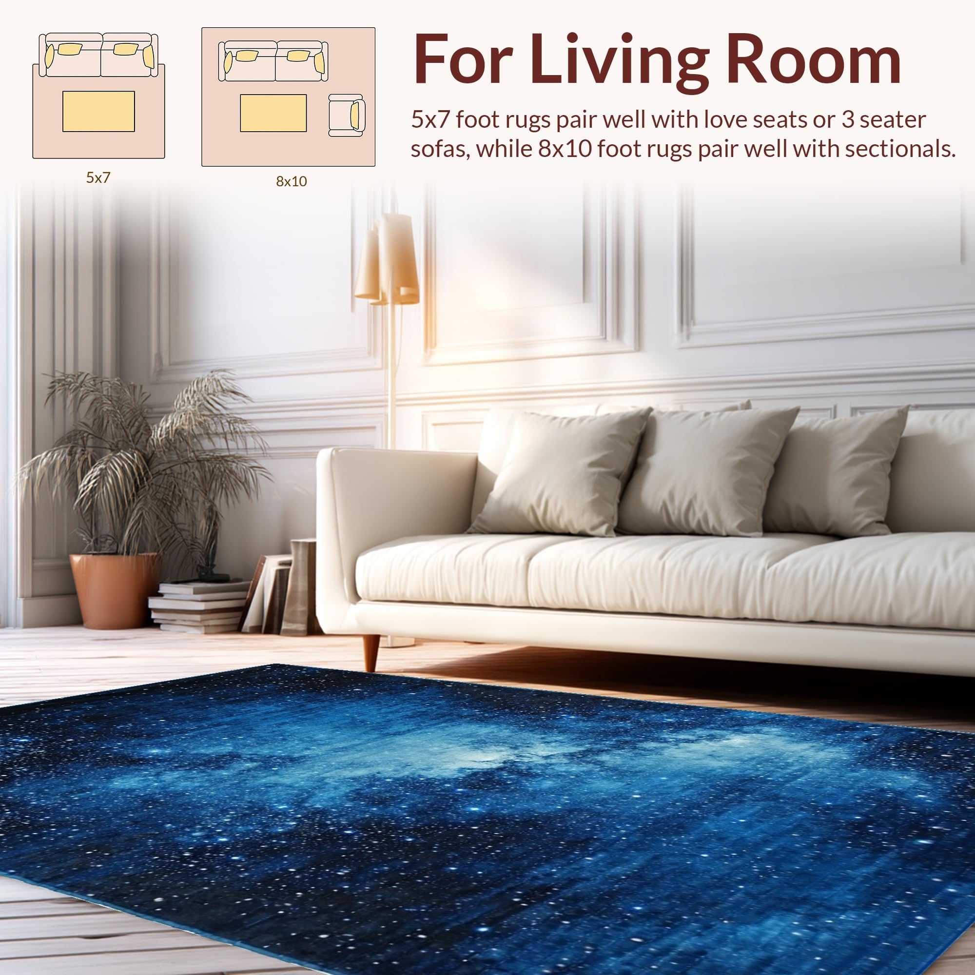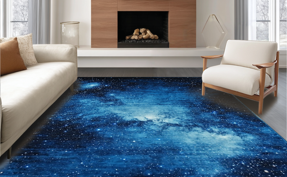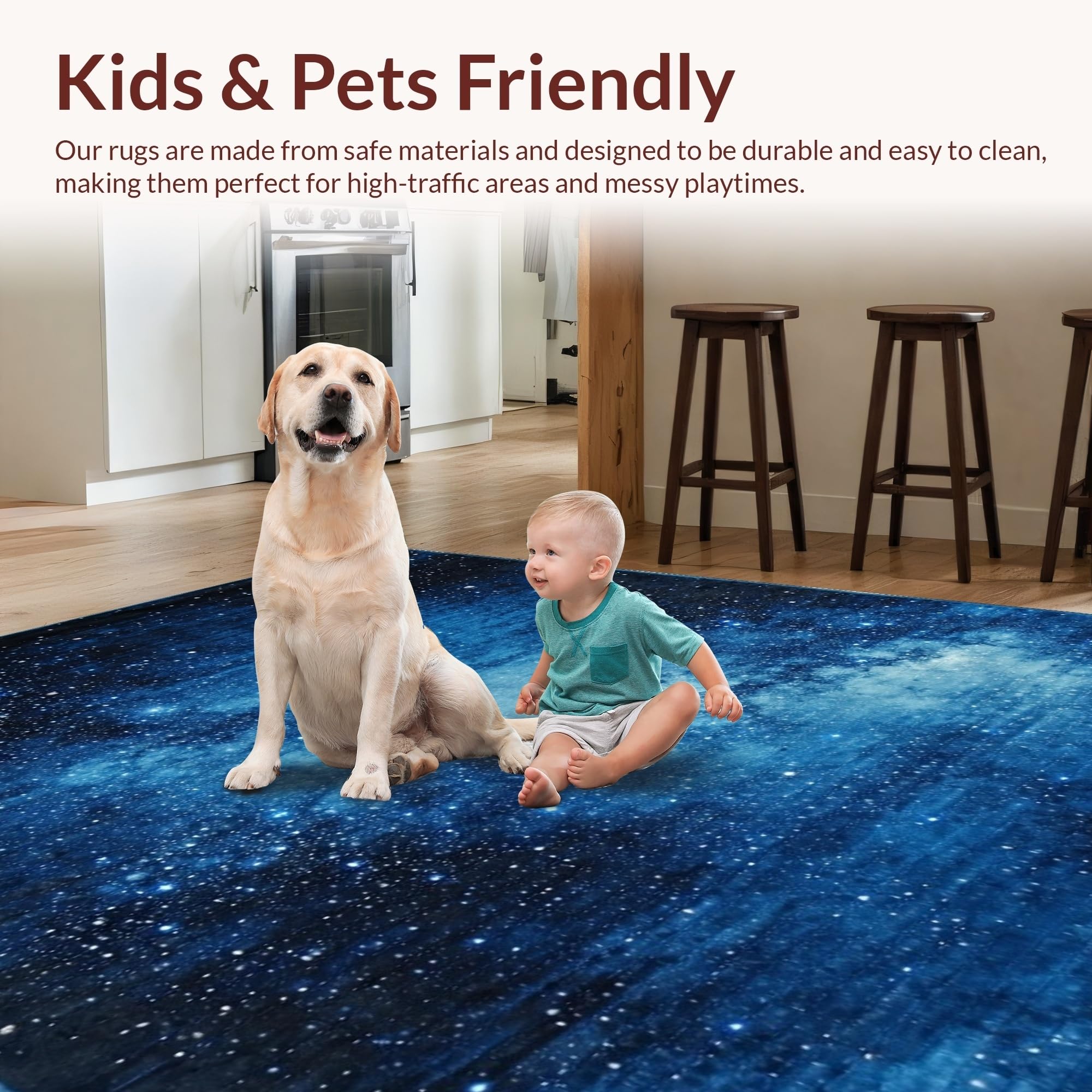 Ultra Soft Area Rug, Non Slip, Stain Resistant, Washable Area Rugs for Living Room, Bedroom, Whimsical Starry Night Inspiration(Blue) Overview: