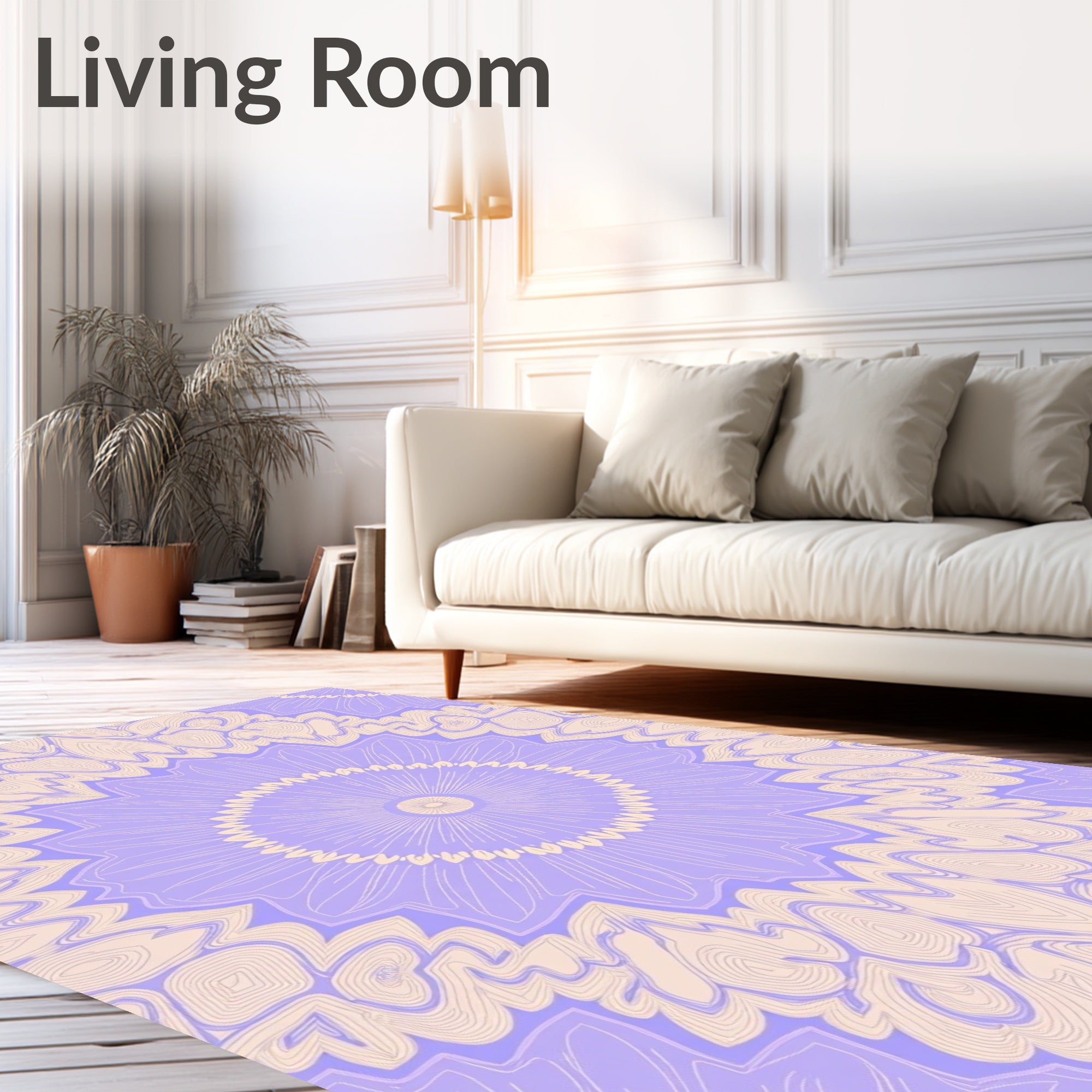 Ultra Soft Area Rug, Non Slip, Stain Resistant, Washable Area Rugs for Living Room, Bedroom, Whimsical Sunburst Radial Damask Elegant Luxury(Purple) Overview: