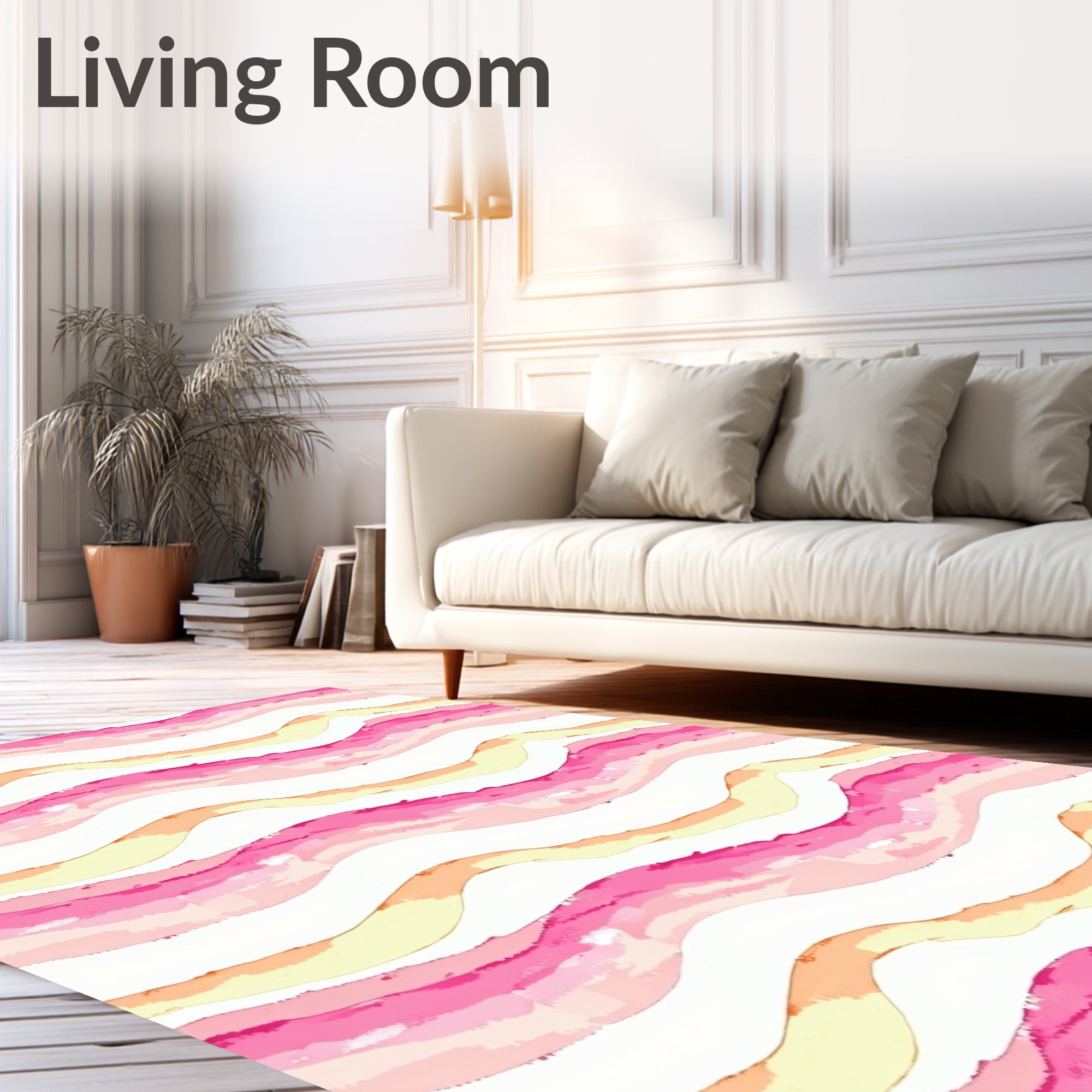 Ultra Soft Area Rug, Non Slip, Stain Resistant, Washable Area Rugs for Living Room, Bedroom, Whimsical Swirl Fantasy Horizontal Band Arrangement(Pink) Overview: