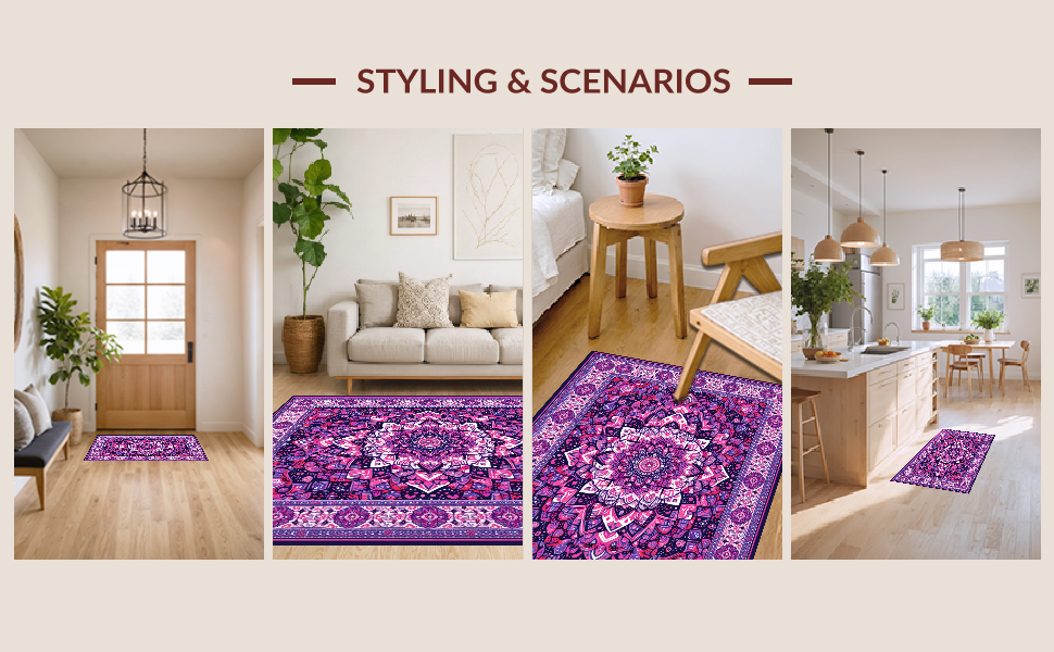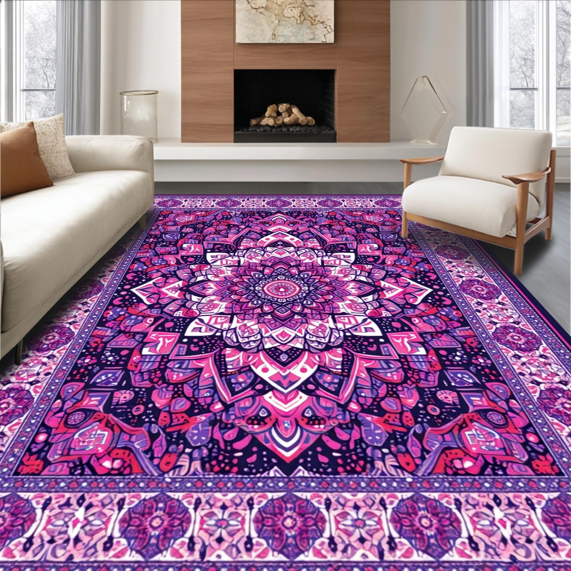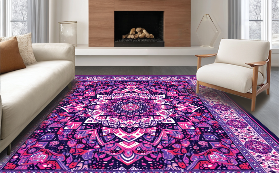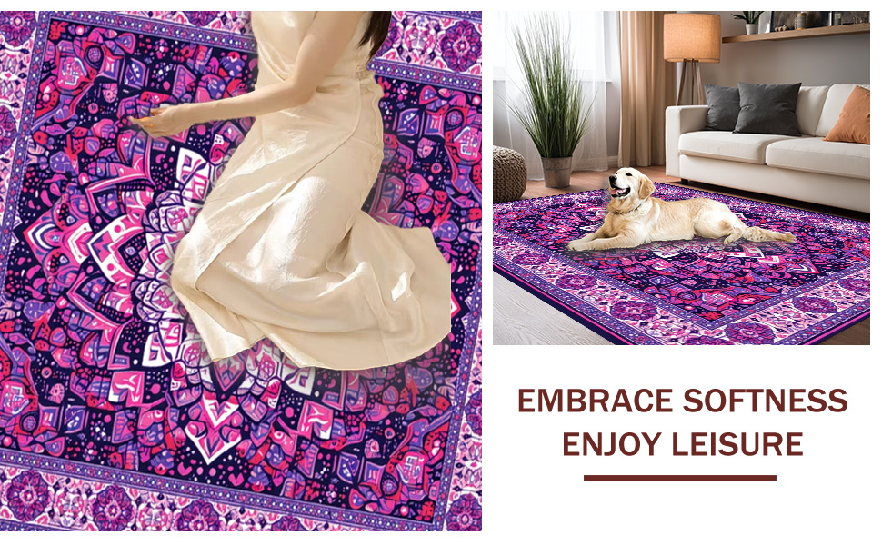 Ultra Soft Area Rug, Non Slip, Stain Resistant, Washable Area Rugs for Living Room, Bedroom, Whimsical Tie-Dye Circular Design(Purple) Overview: