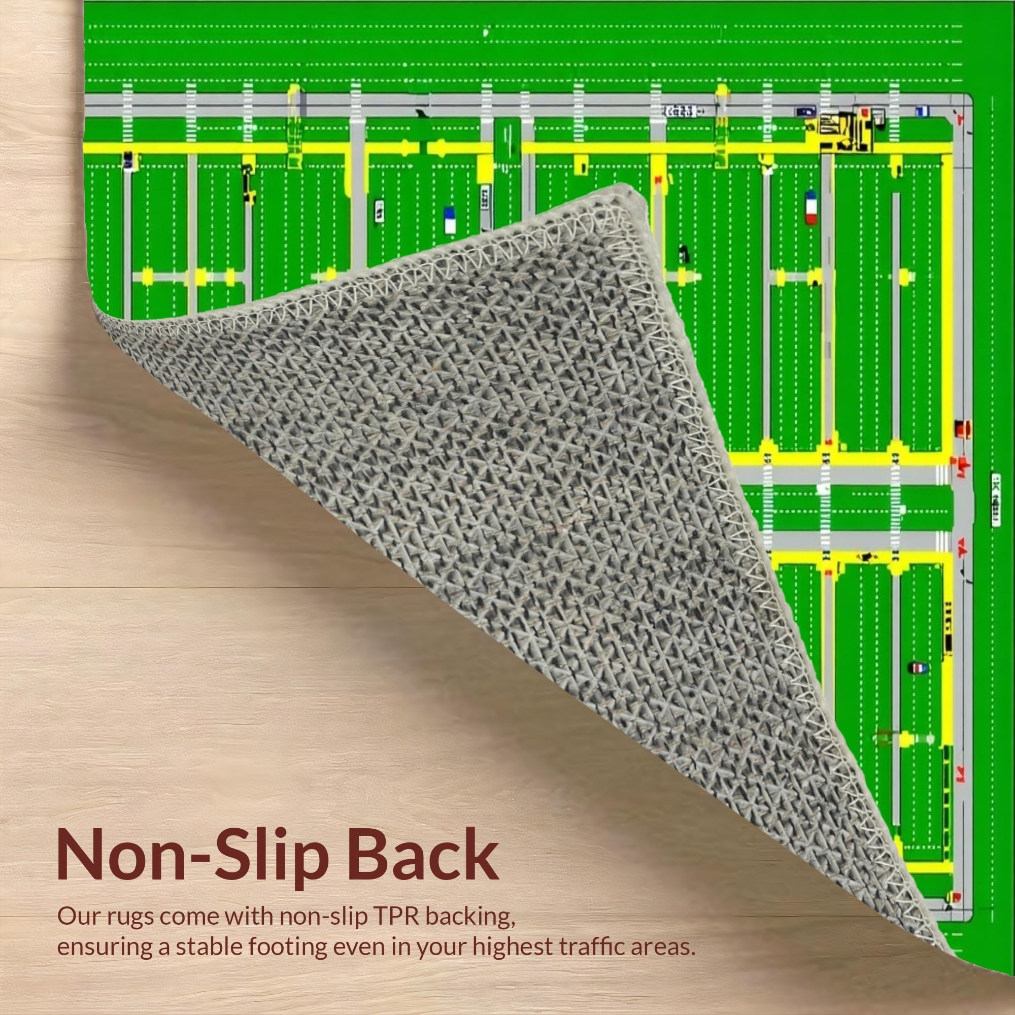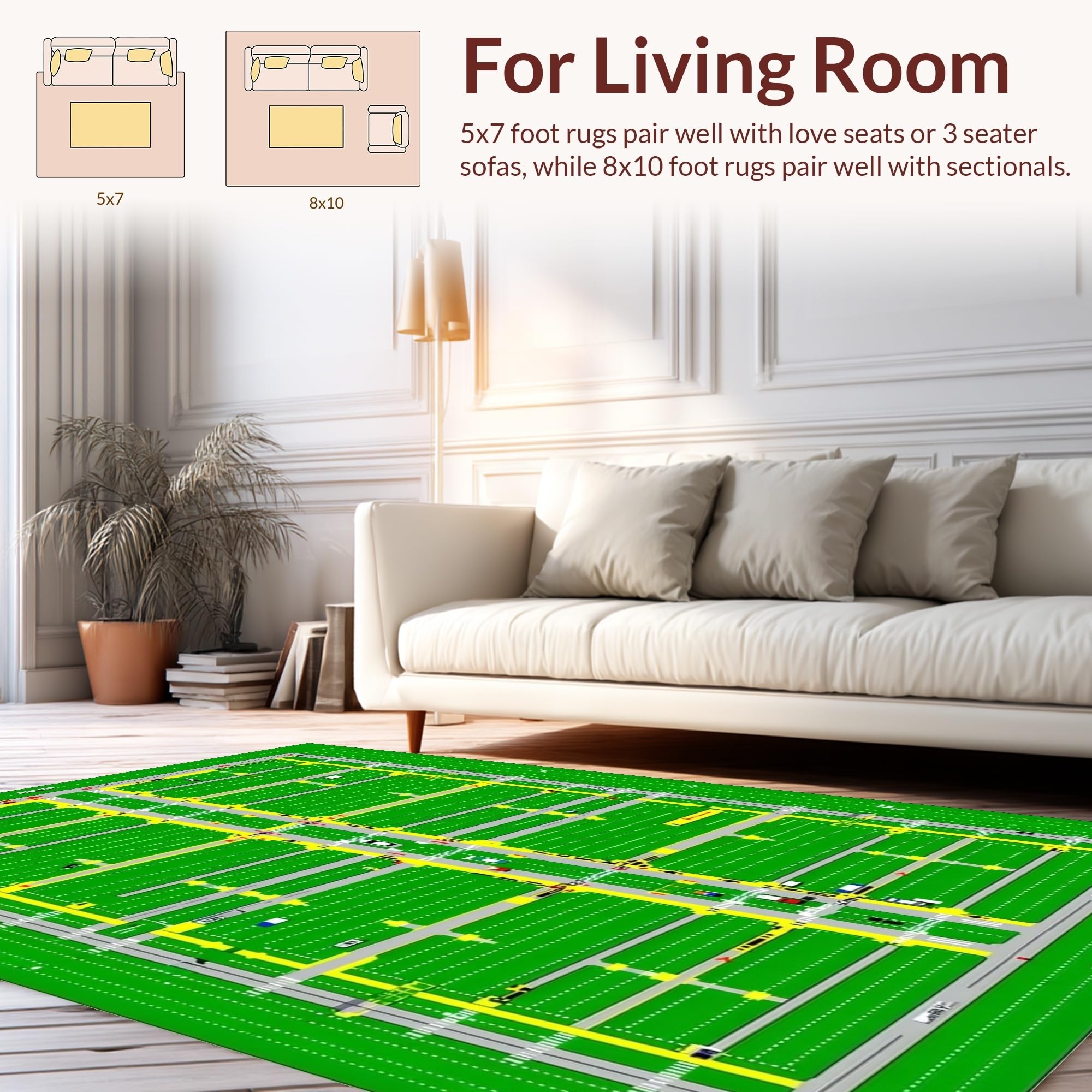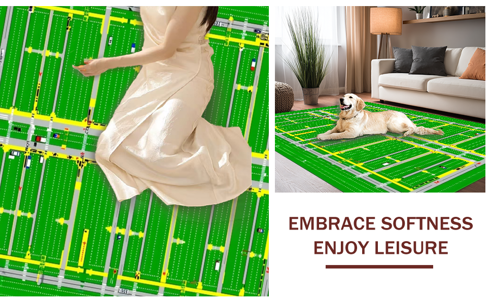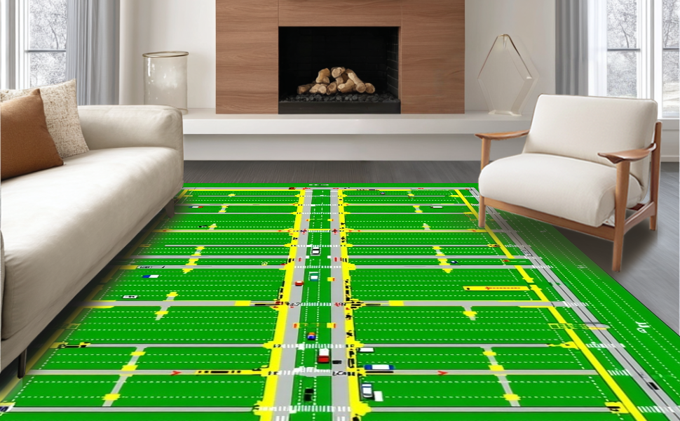 Ultra Soft Area Rug, Non Slip, Stain Resistant, Washable Area Rugs for Living Room, Bedroom, Whimsical Town Design for Kids(Green) Overview: