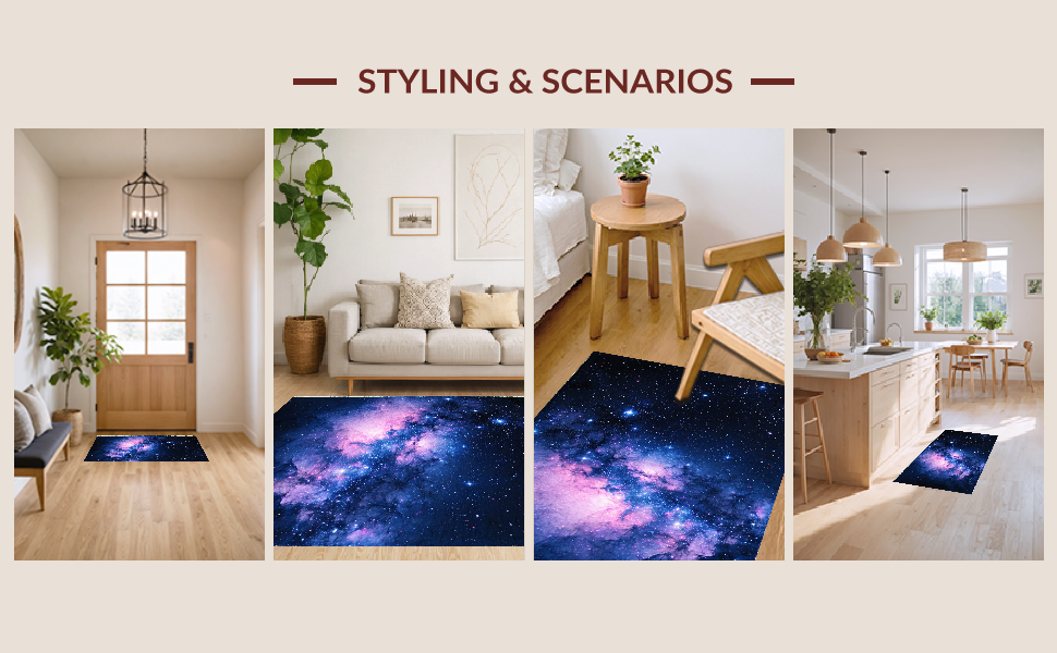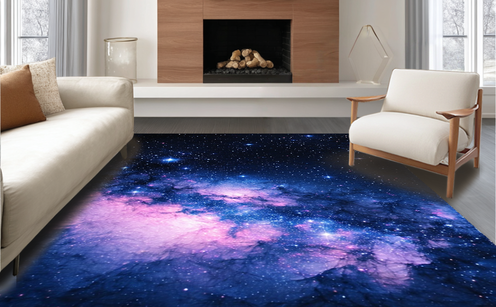 Ultra Soft Area Rug, Non Slip, Stain Resistant, Washable Area Rugs for Living Room, Bedroom, Whimsical Twilight Cloudscape Theme(Blue) Overview: