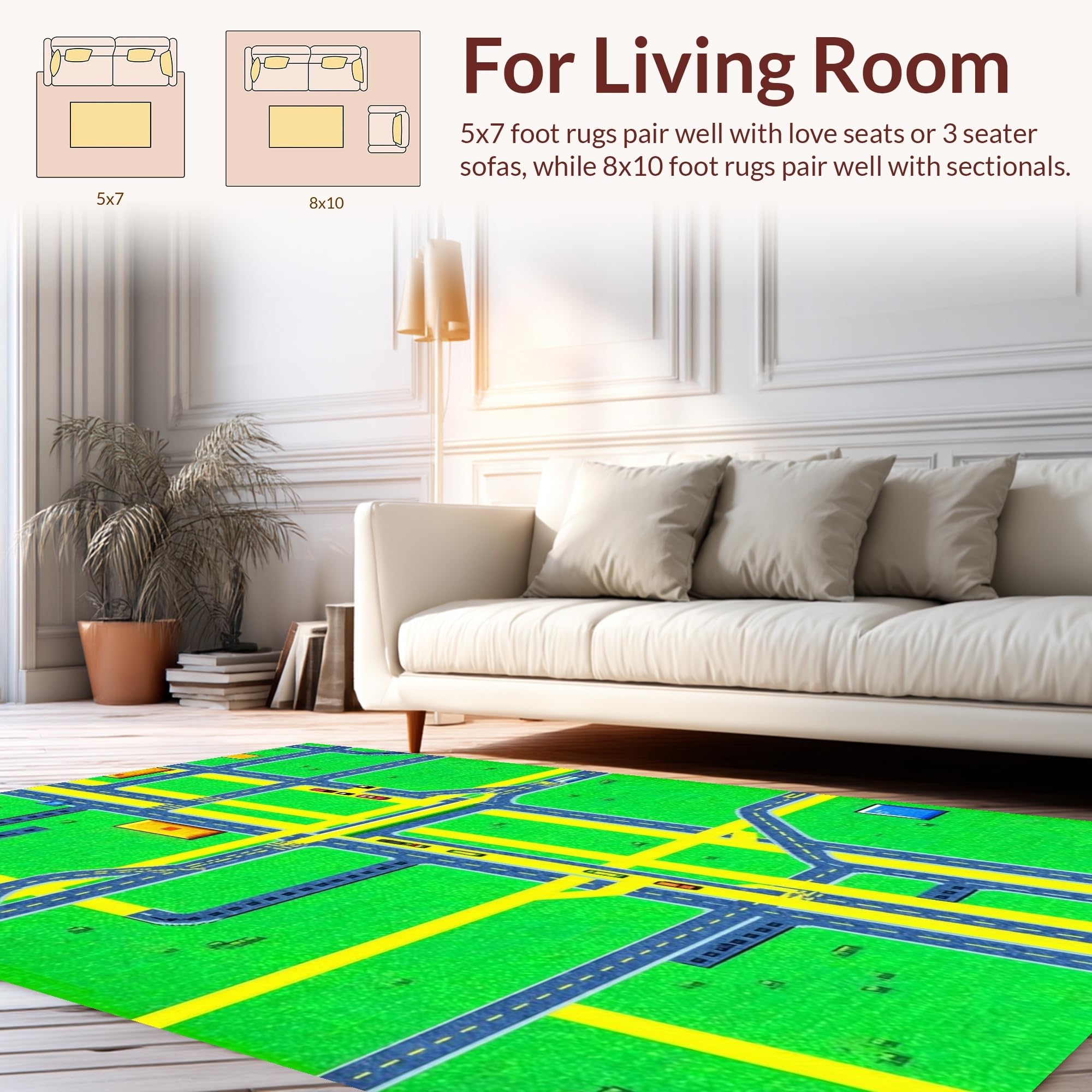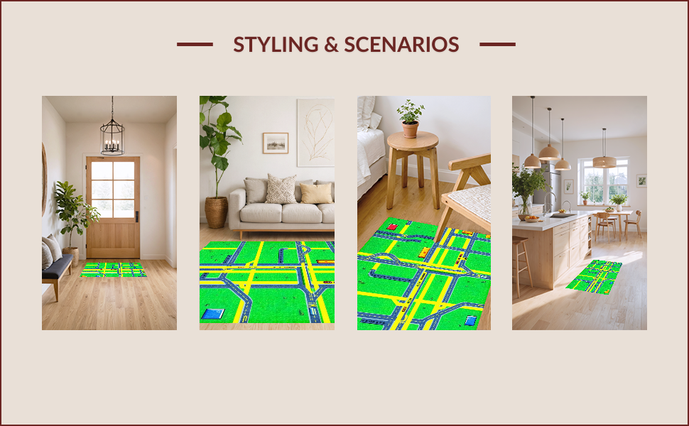 Ultra Soft Area Rug, Non Slip, Stain Resistant, Washable Area Rugs for Living Room, Bedroom, Whimsical Urban Landscape Tapestry(Green) Overview: