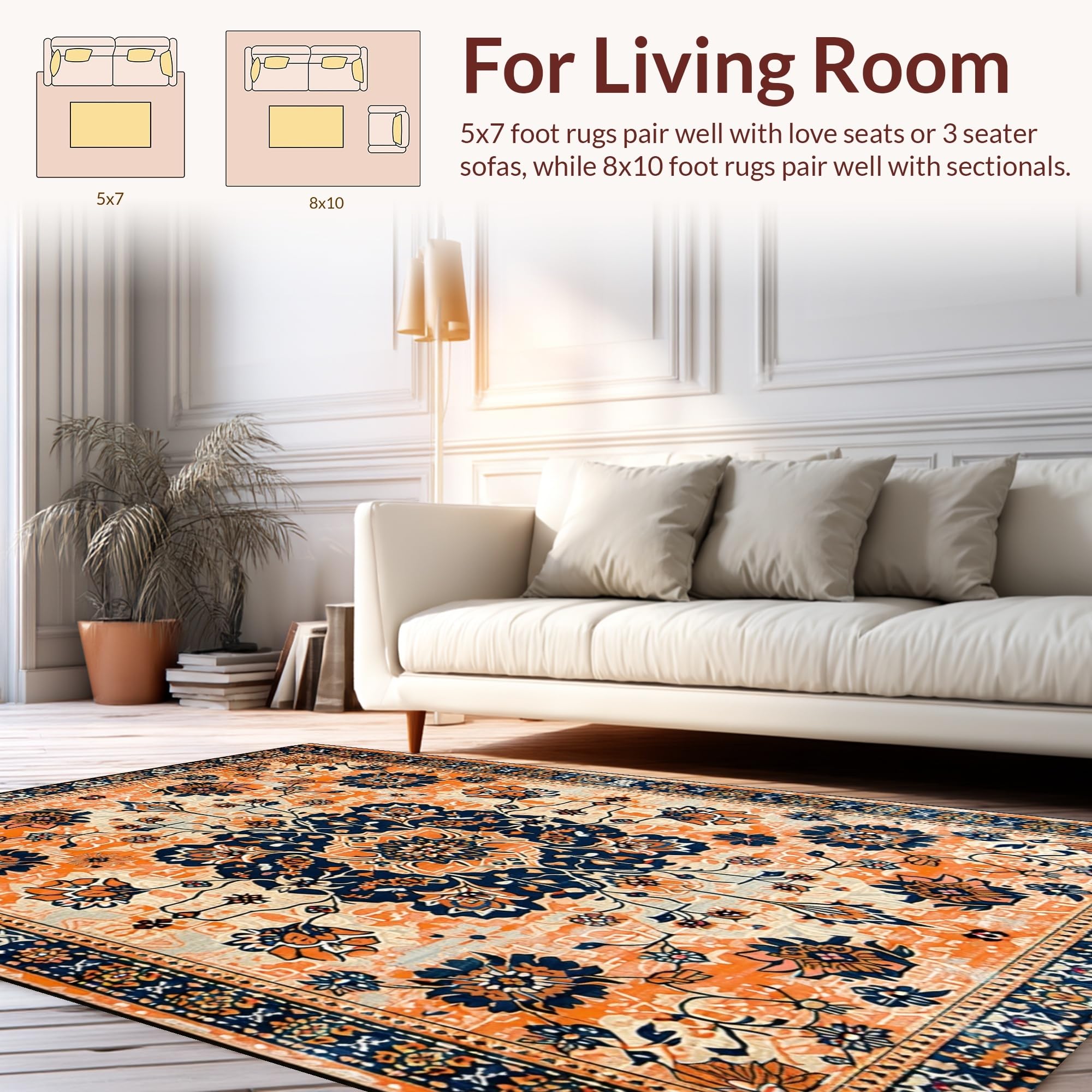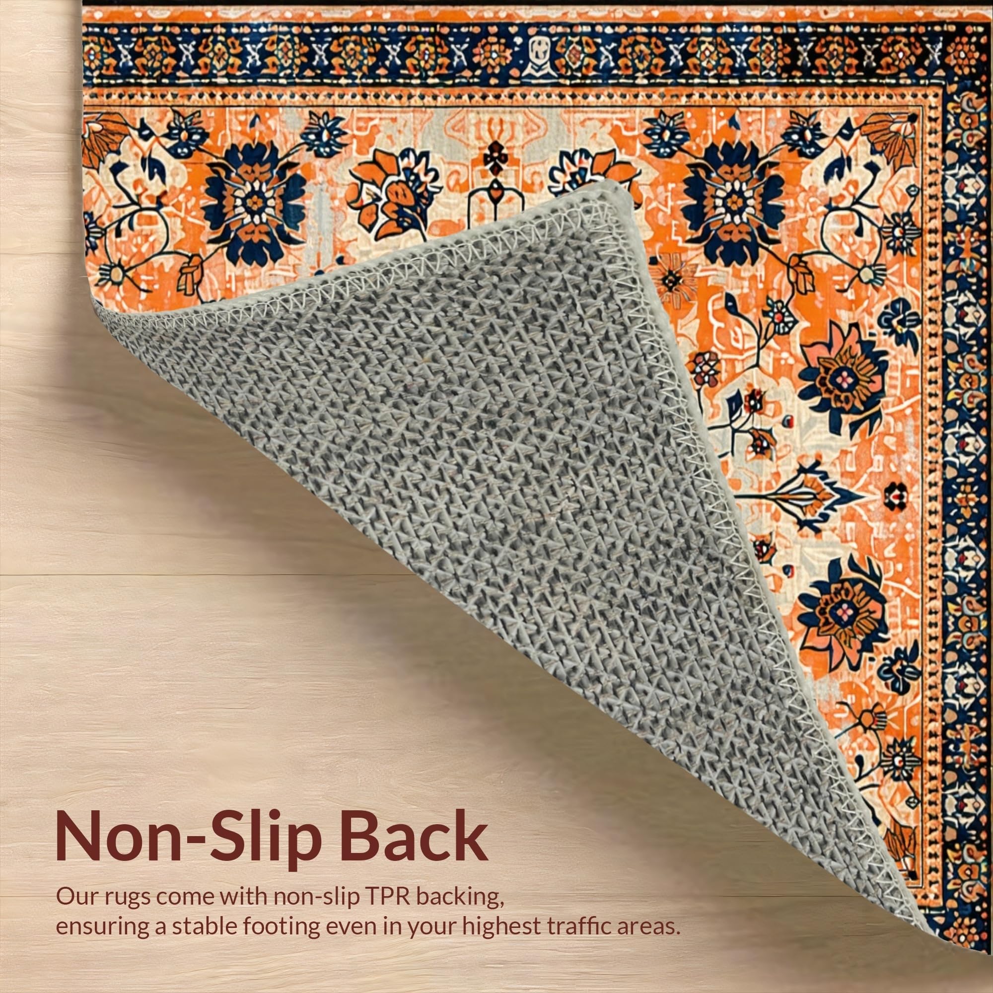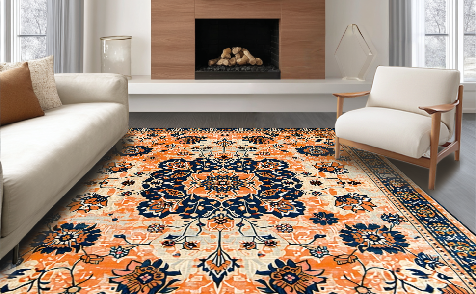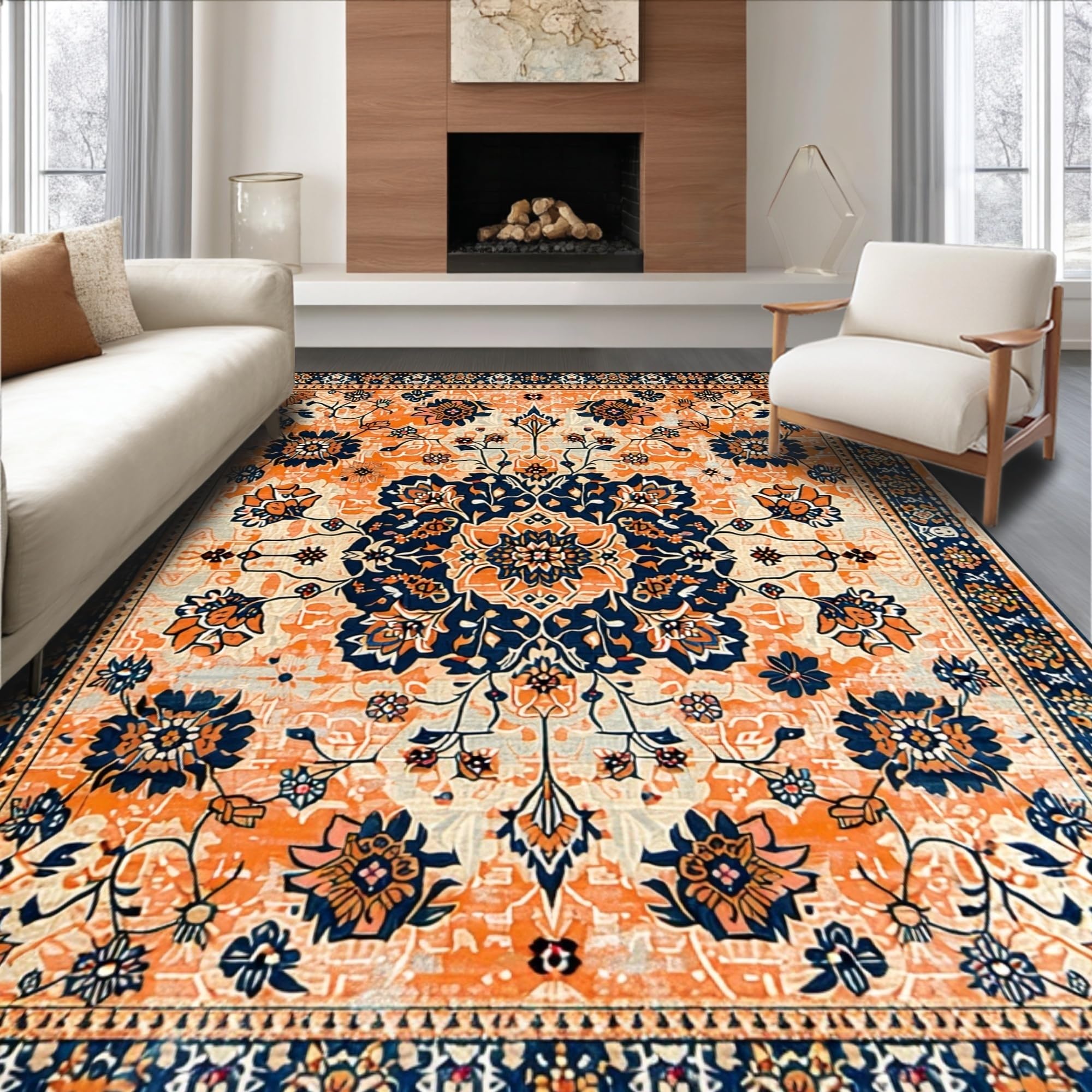Ultra Soft Area Rug, Non Slip, Stain Resistant, Washable Area Rugs for Living Room, Bedroom, Whimsical Vintage Blossom Arrangement(Orange) Overview: