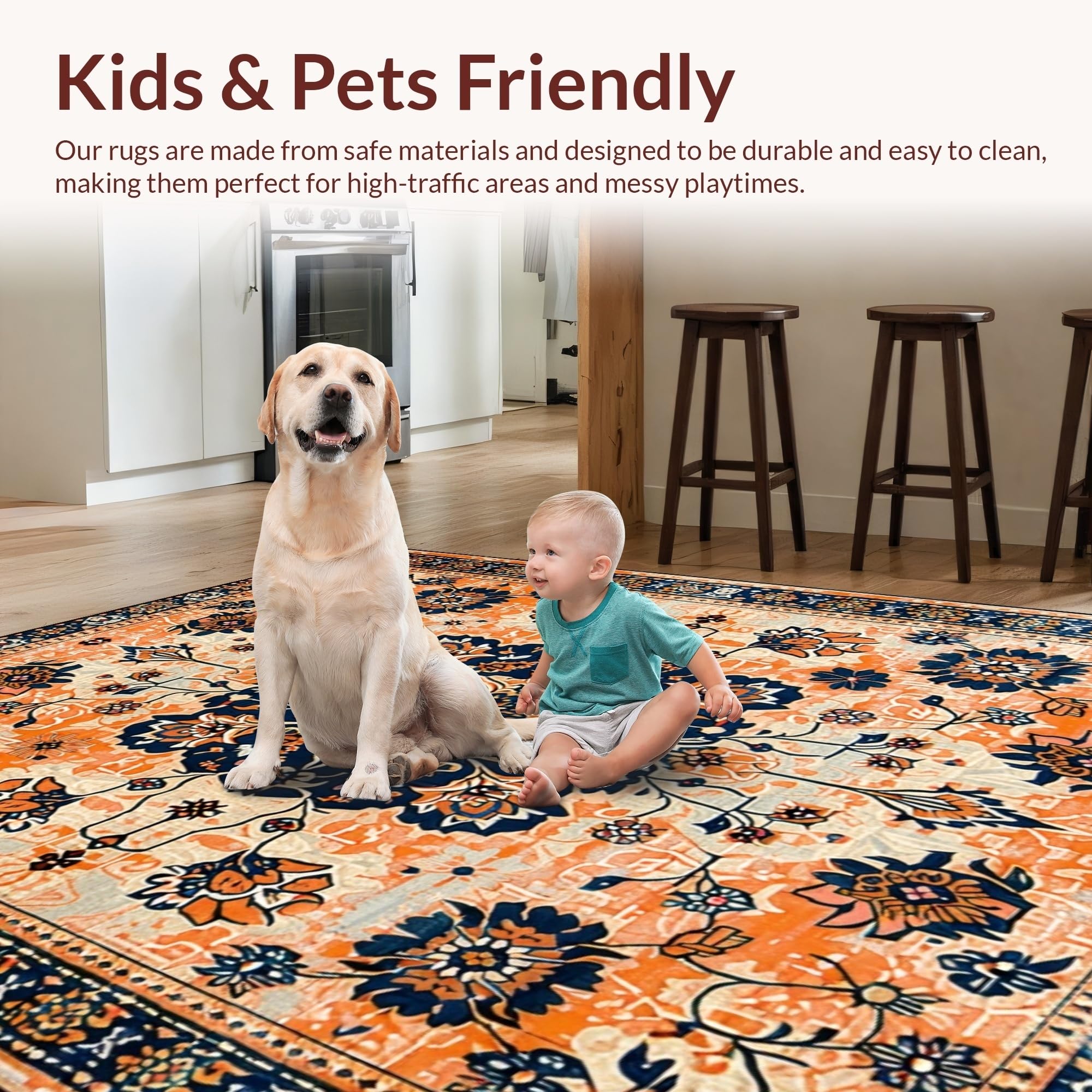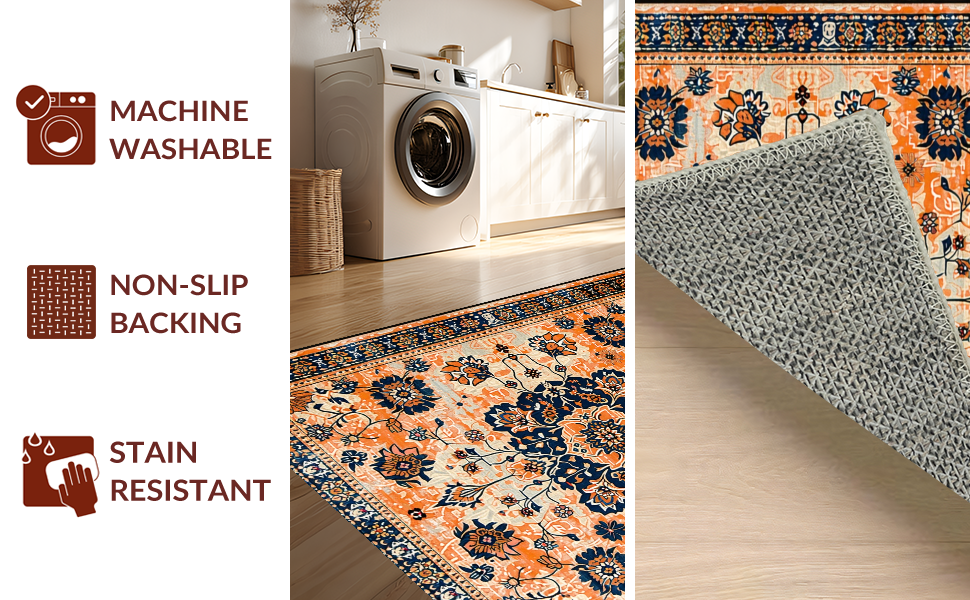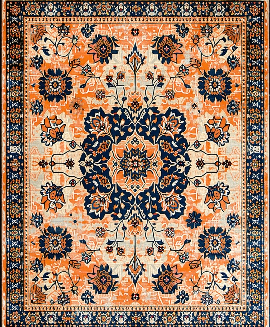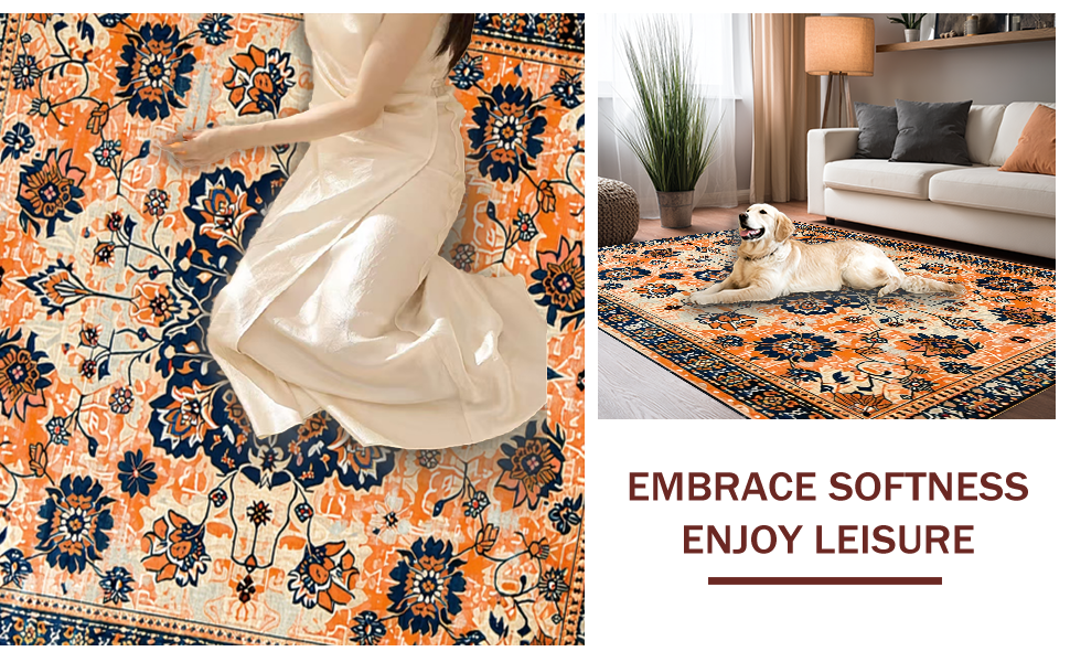 Ultra Soft Area Rug, Non Slip, Stain Resistant, Washable Area Rugs for Living Room, Bedroom, Whimsical Vintage Blossom Arrangement(Orange) Overview: