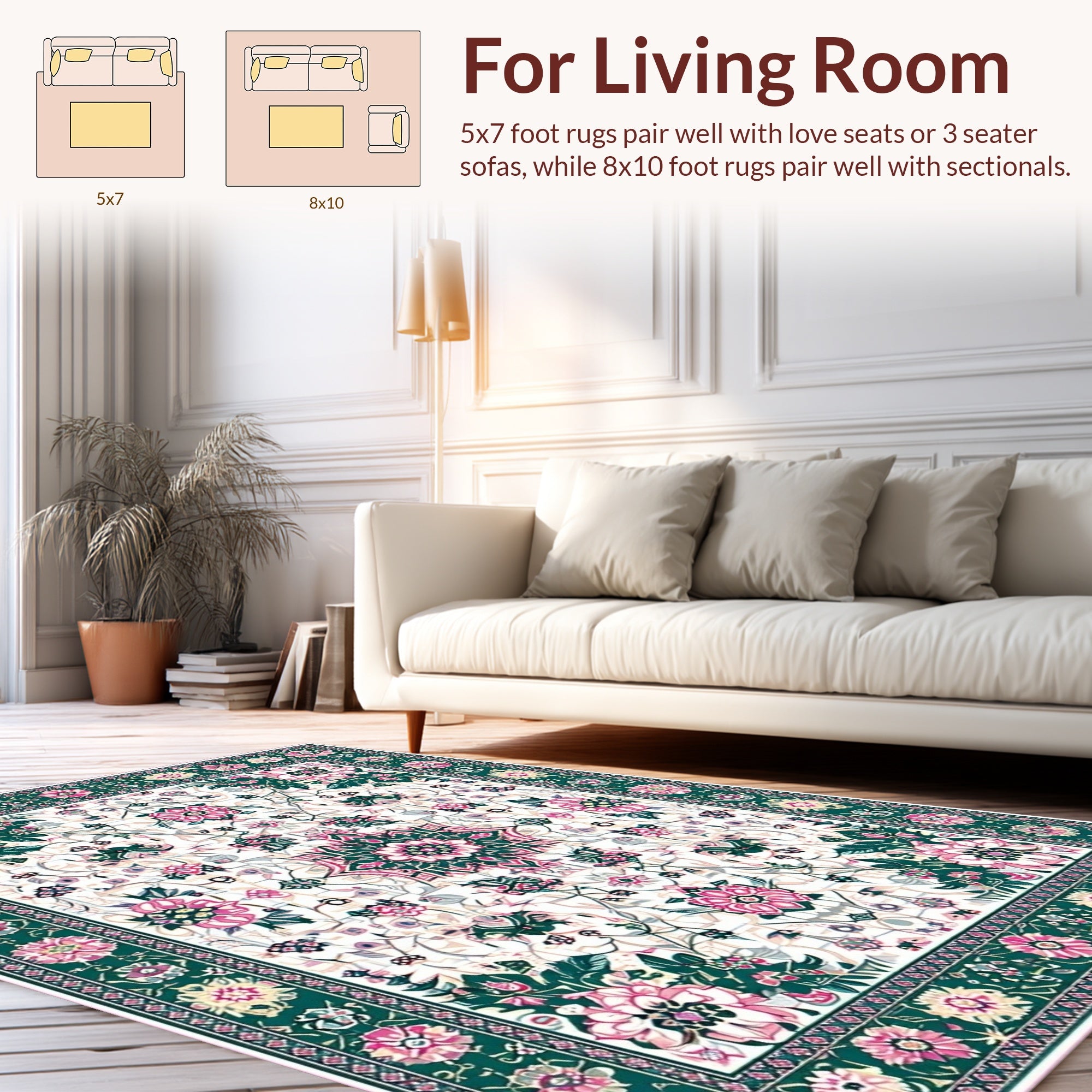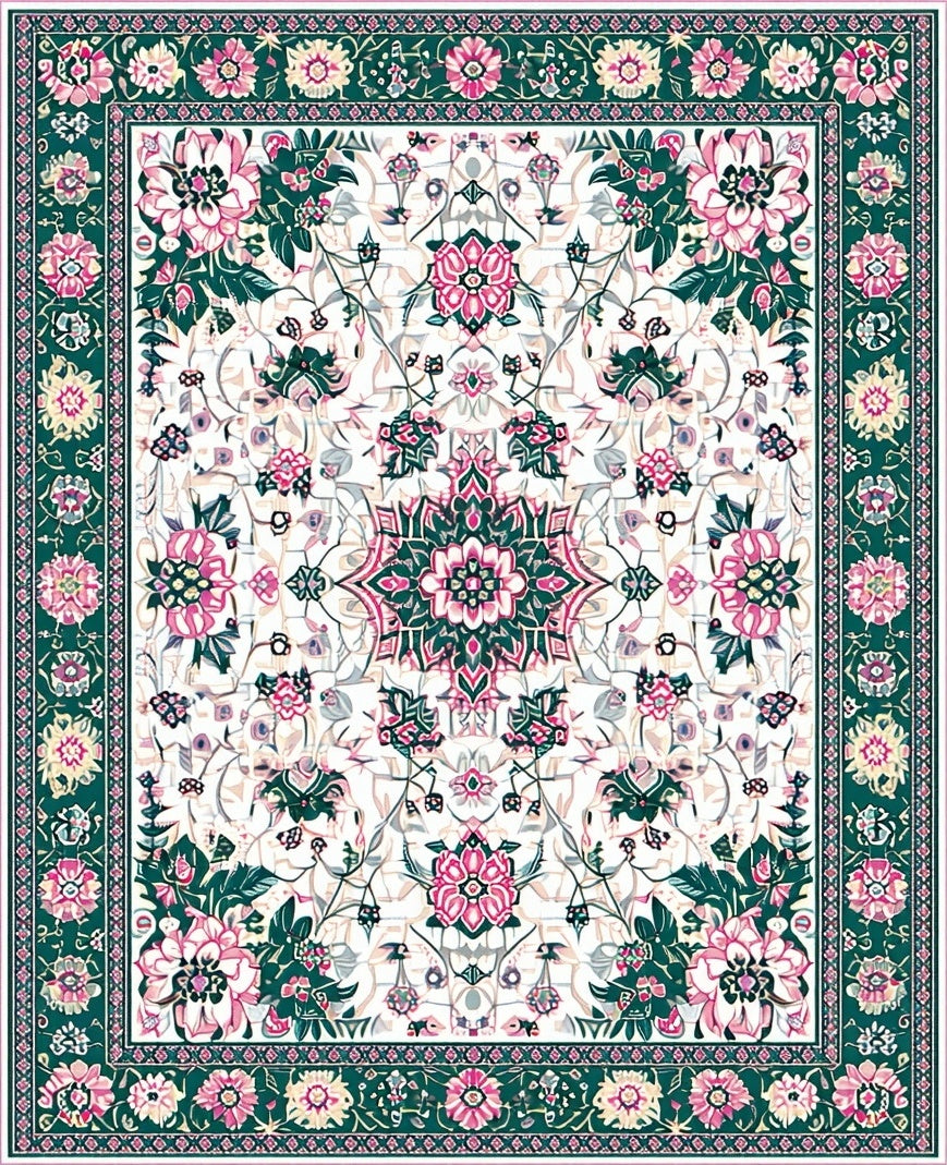 Flatwoven High Traffic Area Rug, Whimsical Vintage Floral Motif, Non Slip, Stain Resistant, Washable Area Rugs for Living Room, Bedroom (White) Overview: