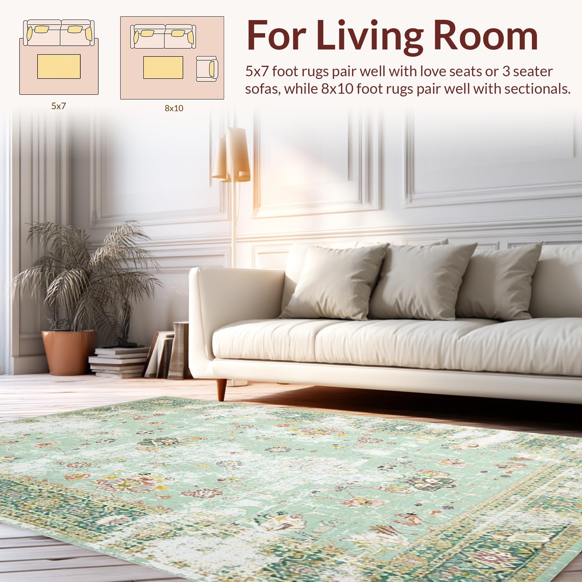 Ultra Soft Area Rug, Non Slip, Stain Resistant, Washable Area Rugs for Living Room, Bedroom, Whimsical Vintage Geometric Touch(Ivory) Overview: