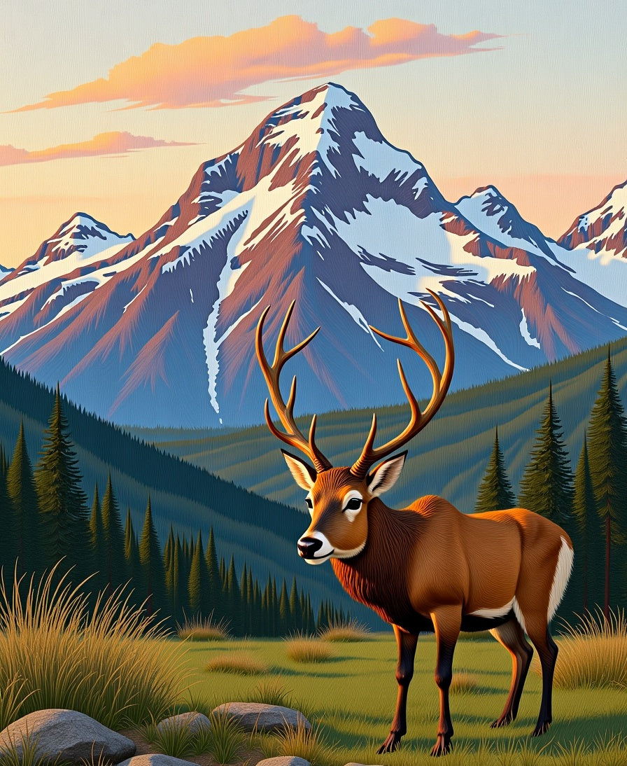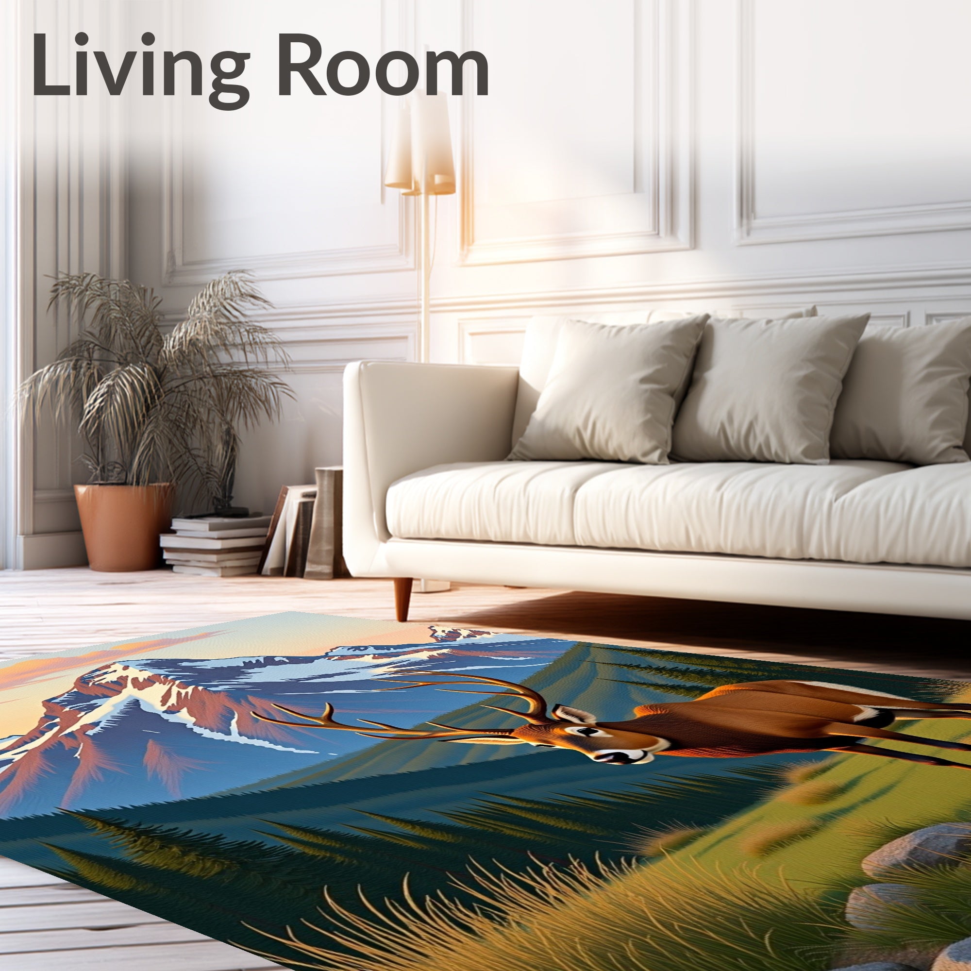 Flatwoven High Traffic Area Rug, Wildlife Roaming Natural Mountain Valley Tapestry, Non Slip, Stain Resistant, Washable Area Rugs for Living Room, Bedroom (Brown) Overview: