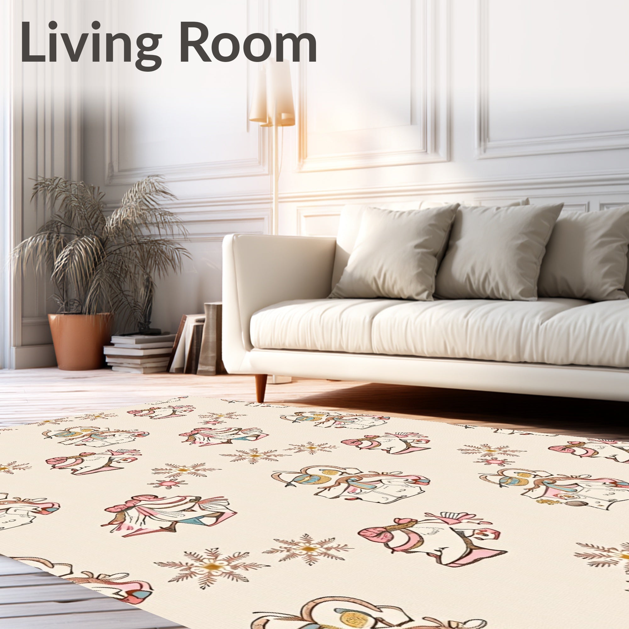 Ultra Soft Area Rug, Non Slip, Stain Resistant, Washable Area Rugs for Living Room, Bedroom, Winter Bell Semicircle Entrance Covering Festive(Beige) Overview: