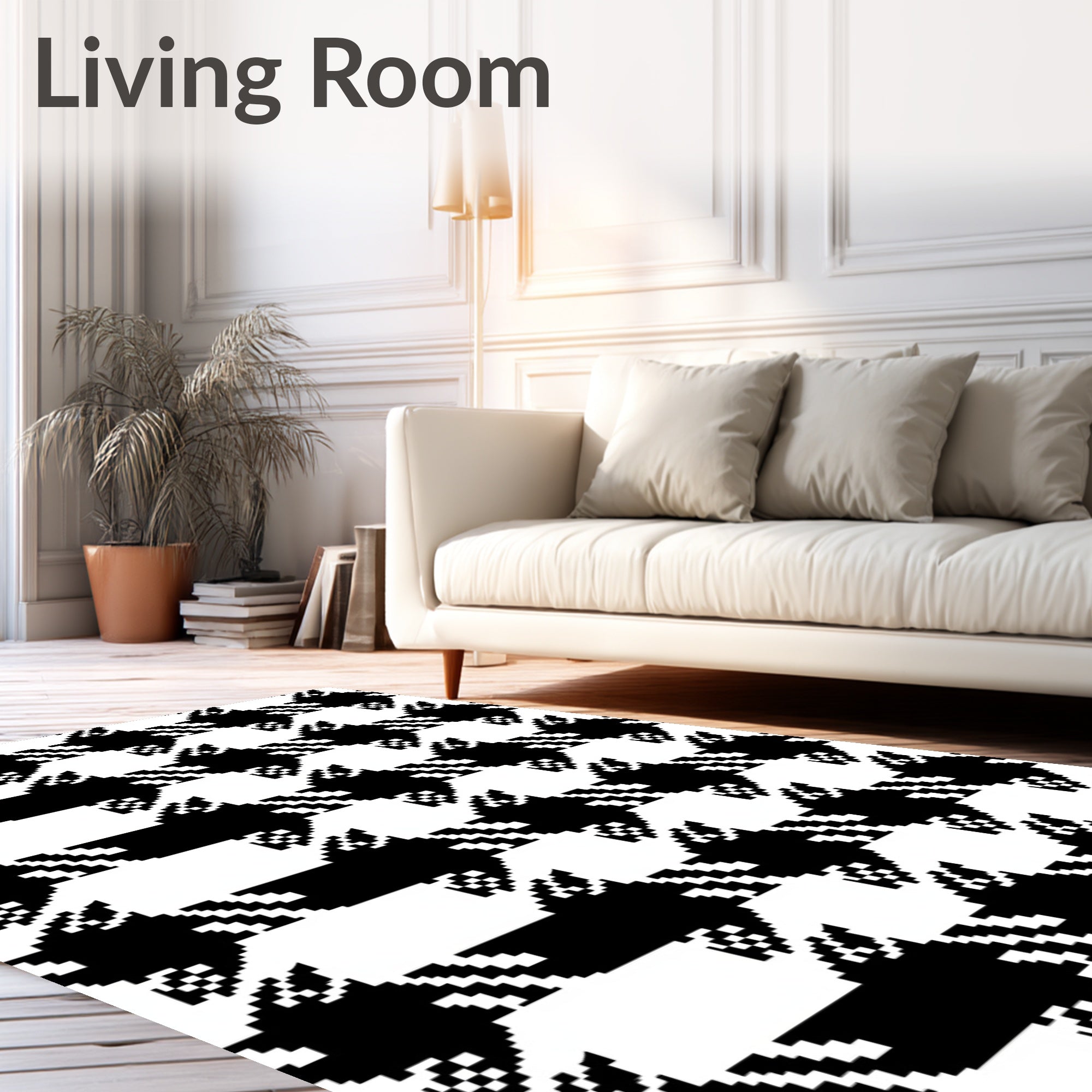 Flatwoven High Traffic Area Rug, Winter Buffalo Plaid Design Accent Textile, Non Slip, Stain Resistant, Washable Area Rugs for Living Room, Bedroom (Black) Overview: