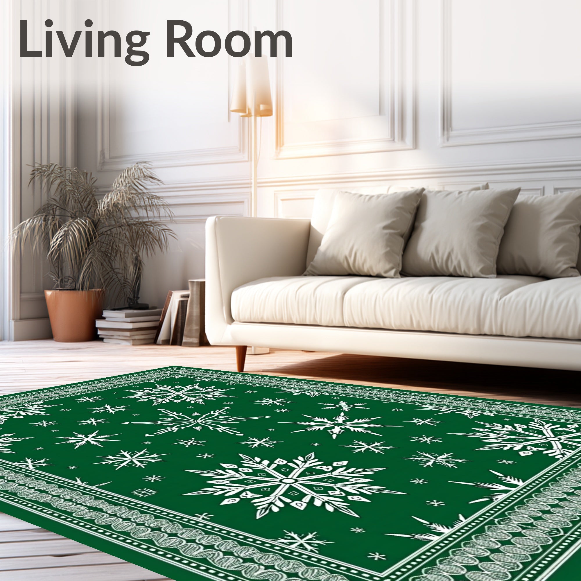Ultra Soft Area Rug, Non Slip, Stain Resistant, Washable Area Rugs for Living Room, Bedroom, Winter Crystalline Snowflake Area(Green) Overview: