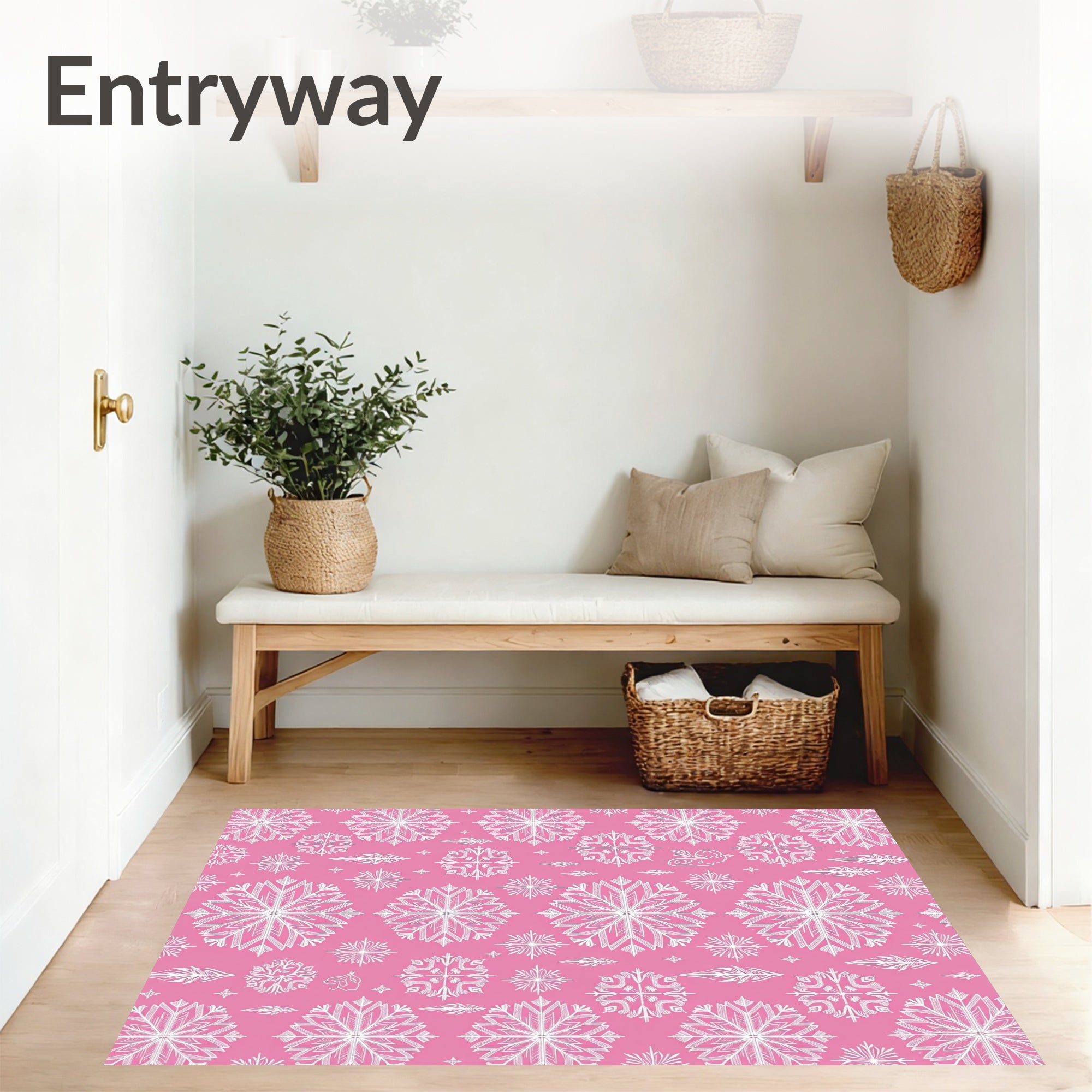Winter Entryway Decorative Snowflake Print Holiday Welcome(Pink)