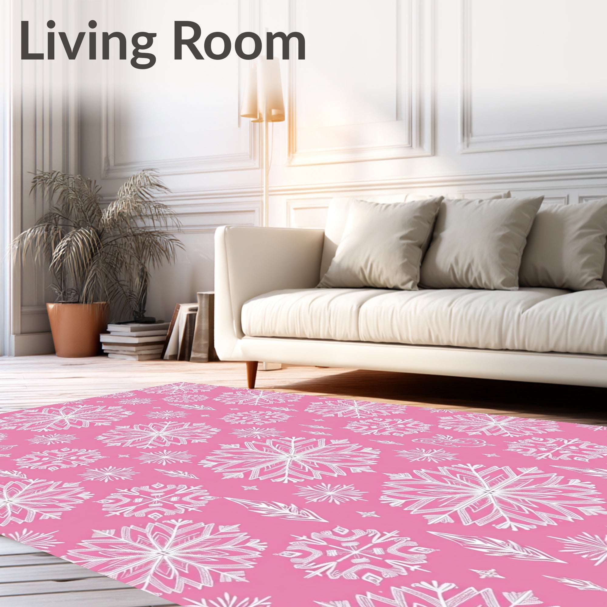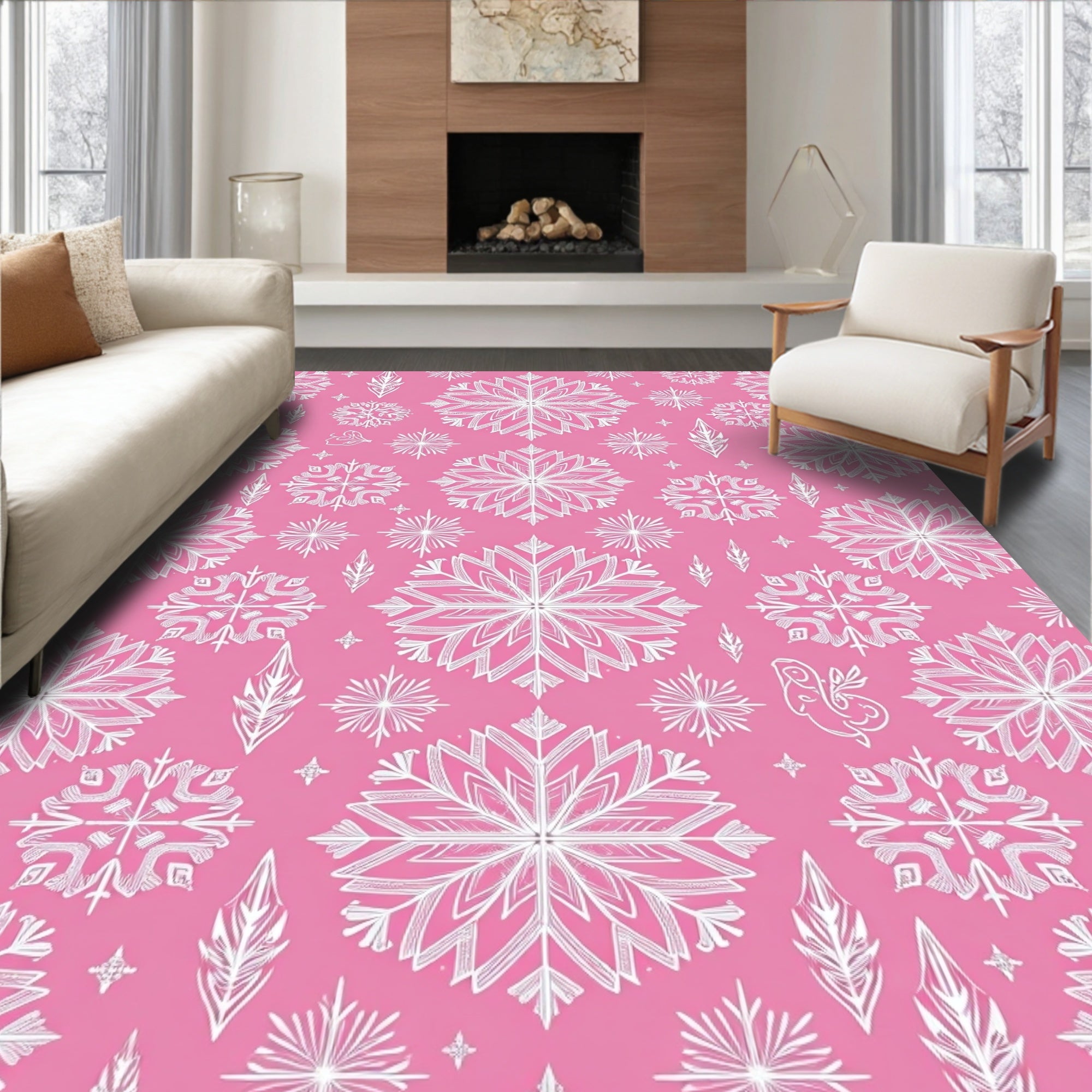 Ultra Soft Area Rug, Non Slip, Stain Resistant, Washable Area Rugs for Living Room, Bedroom, Winter Entryway Decorative Snowflake Print Holiday Welcome(Pink) Overview: