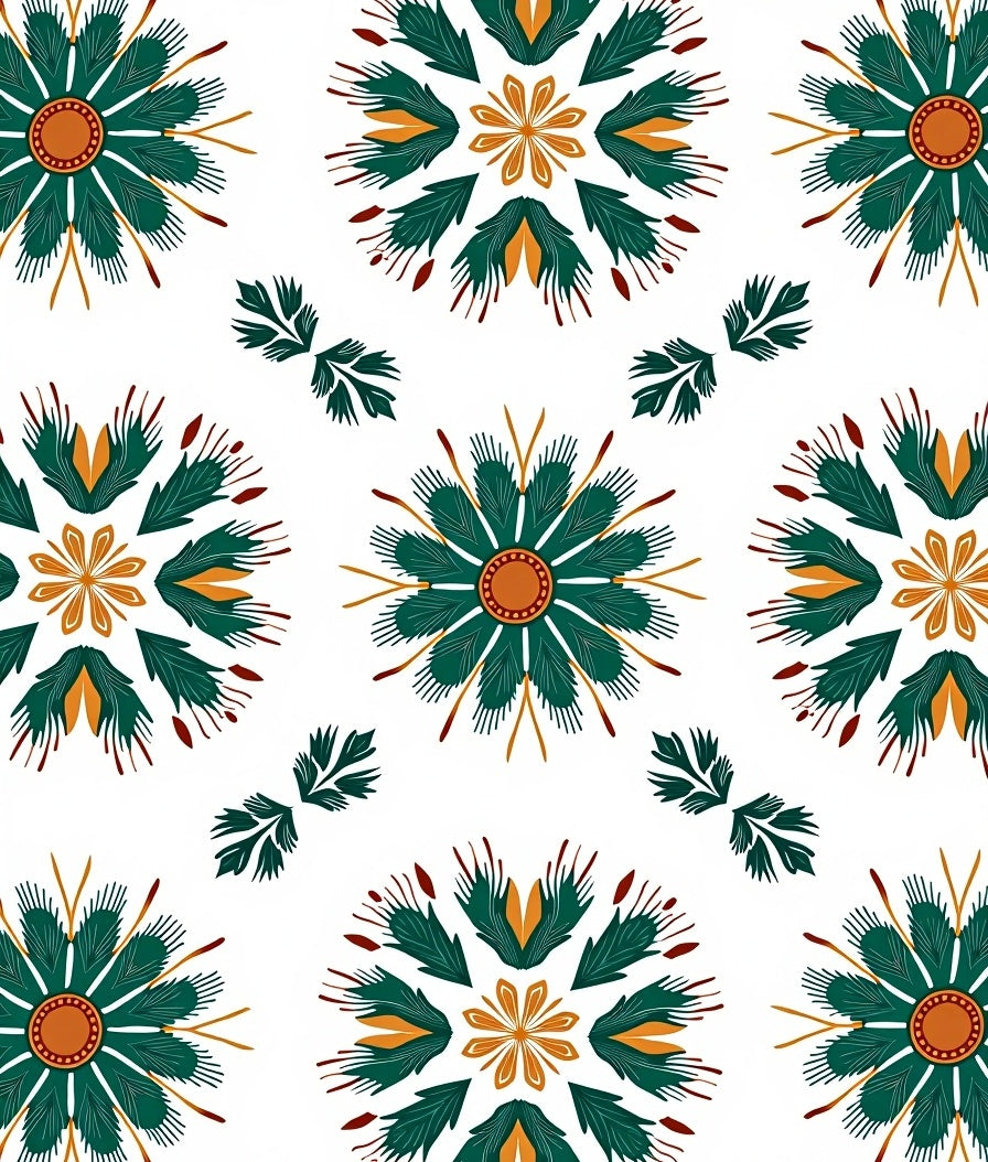 Winter Forest Medallion with Stylized Pine Branches and Starburst Highlights(Green)
