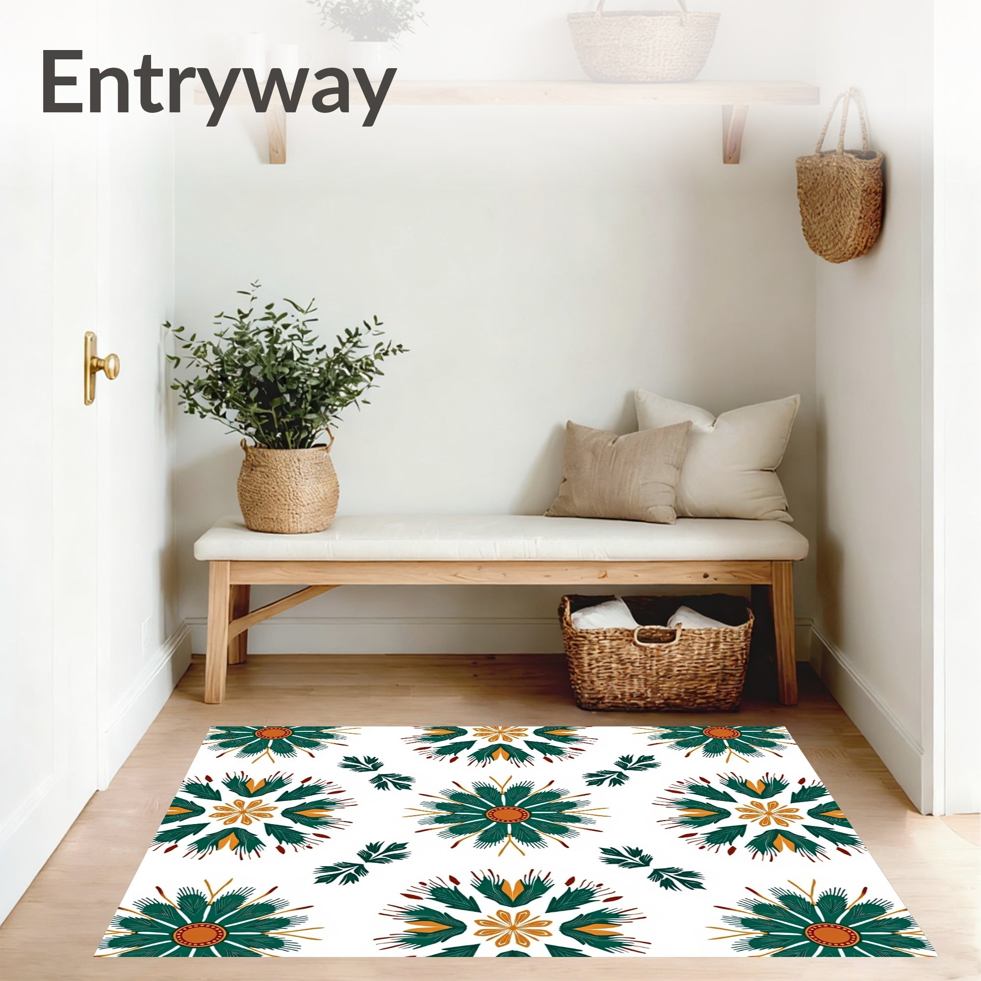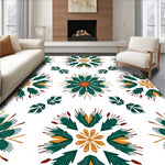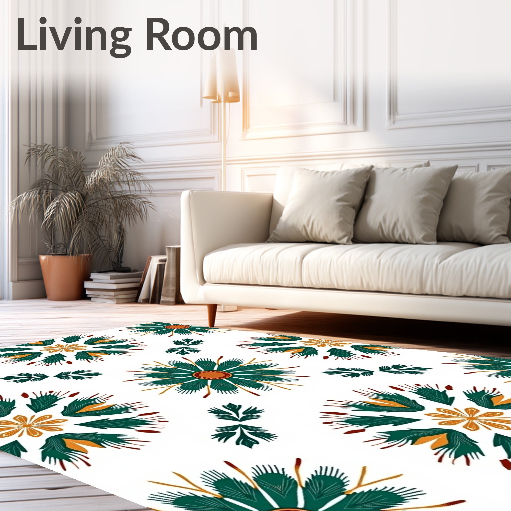 Ultra Soft Area Rug, Non Slip, Stain Resistant, Washable Area Rugs for Living Room, Bedroom, Winter Forest Medallion with Stylized Pine Branches and Starburst Highlights(Green) Overview: