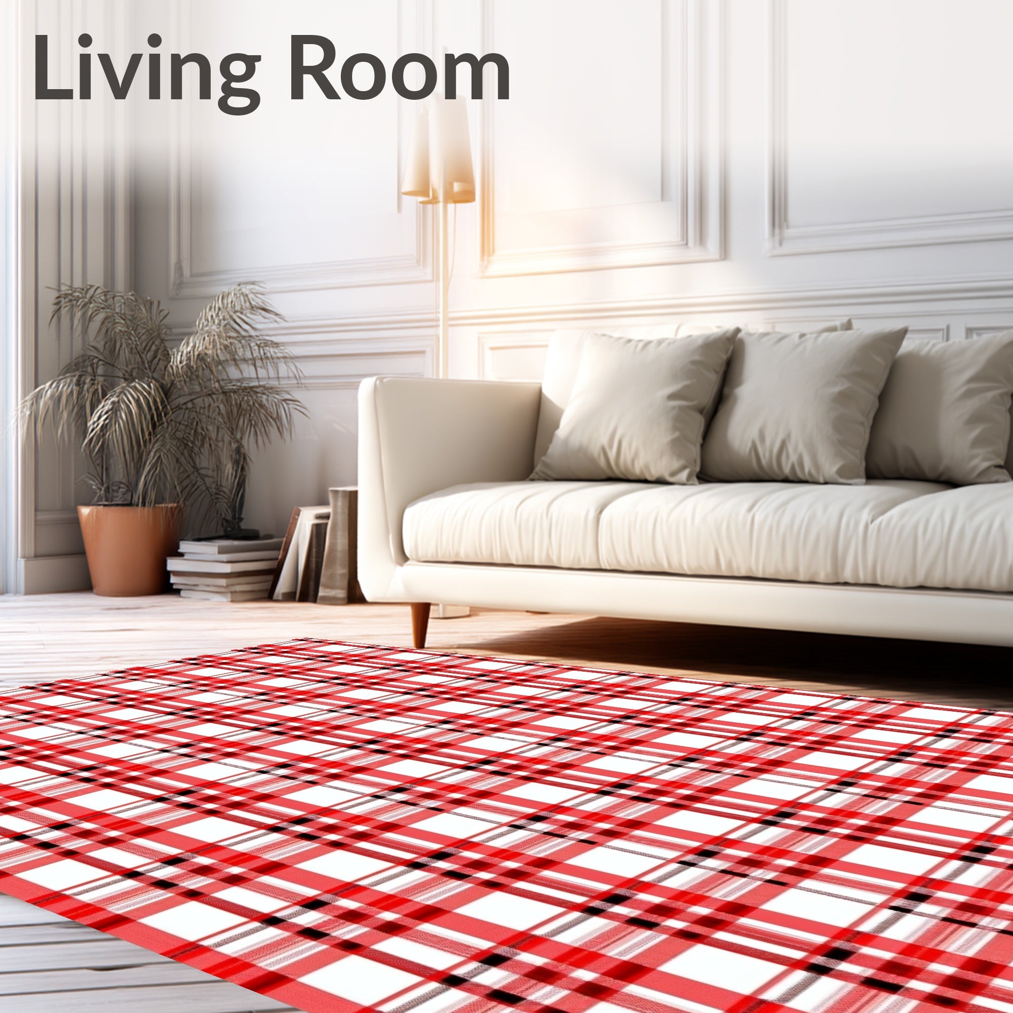 Ultra Soft Area Rug, Non Slip, Stain Resistant, Washable Area Rugs for Living Room, Bedroom, Winter Gingham Entrance with Charming Farmhouse Squares(Red) Overview: