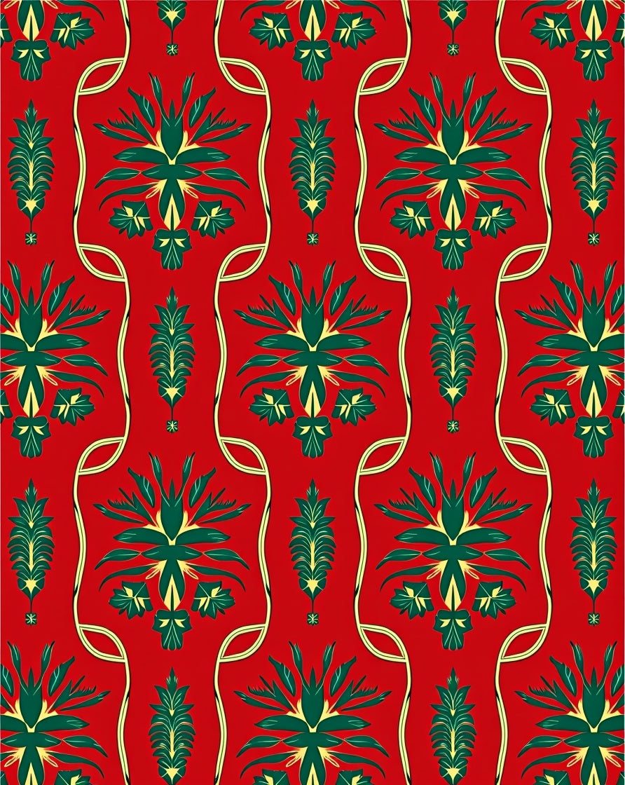 Winter Interlocking Lattice with Classic Pine Motifs(Red)