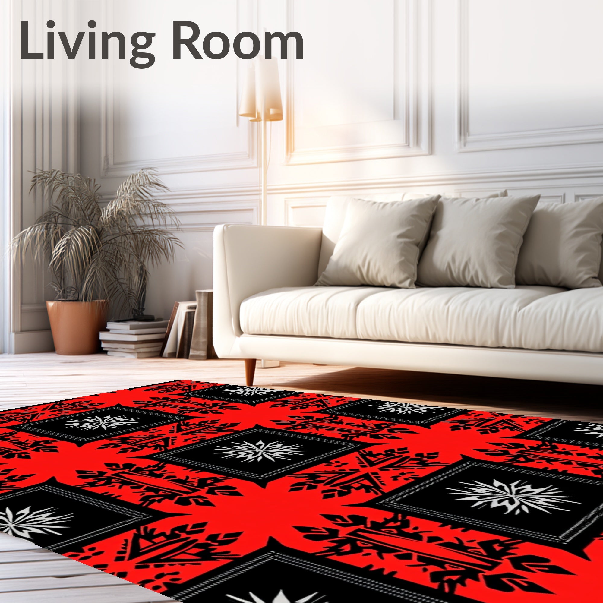 Ultra Soft Area Rug, Non Slip, Stain Resistant, Washable Area Rugs for Living Room, Bedroom, Winter Pine Bough Plaid with Nordic Inspired Accents(Red) Overview: