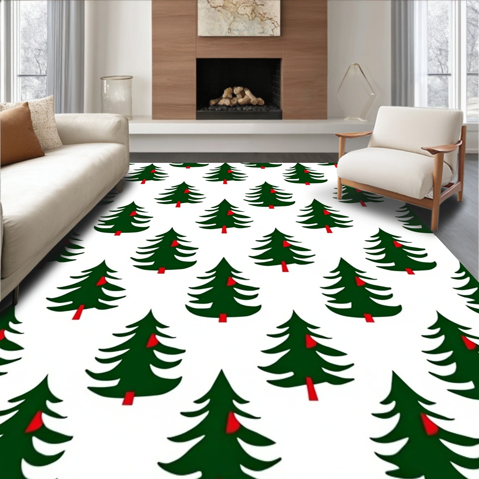 Ultra Soft Area Rug, Non Slip, Stain Resistant, Washable Area Rugs for Living Room, Bedroom, Winter Pine Forest Interlocking Scene(Green) Overview: