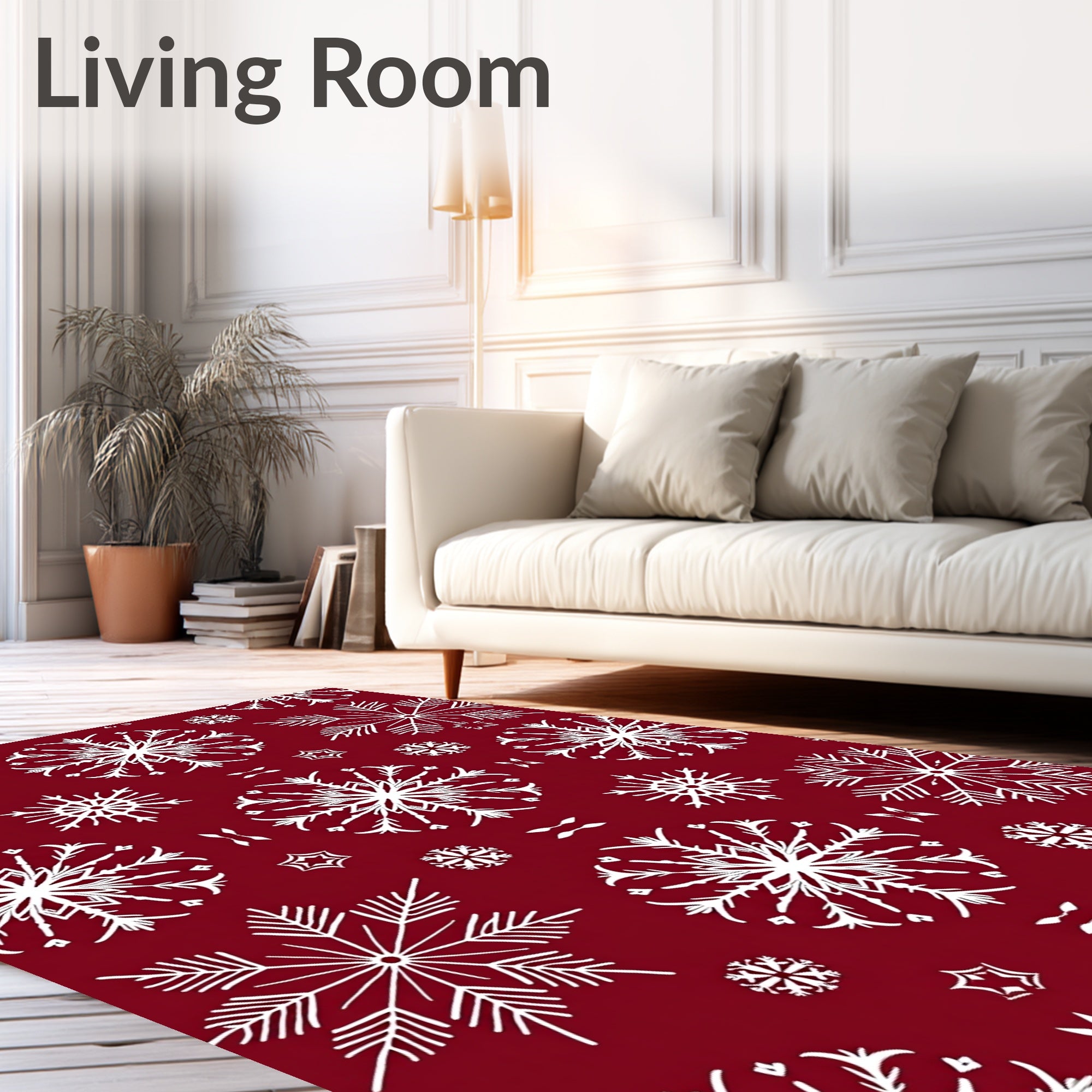 Ultra Soft Area Rug, Non Slip, Stain Resistant, Washable Area Rugs for Living Room, Bedroom, Winter Snowflake Festival Accent(Red) Overview: