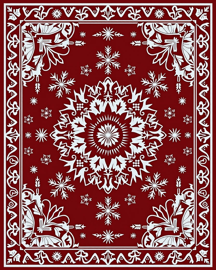 Winter Snowflake Tapestry with Crystalline Motifs(Red)