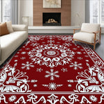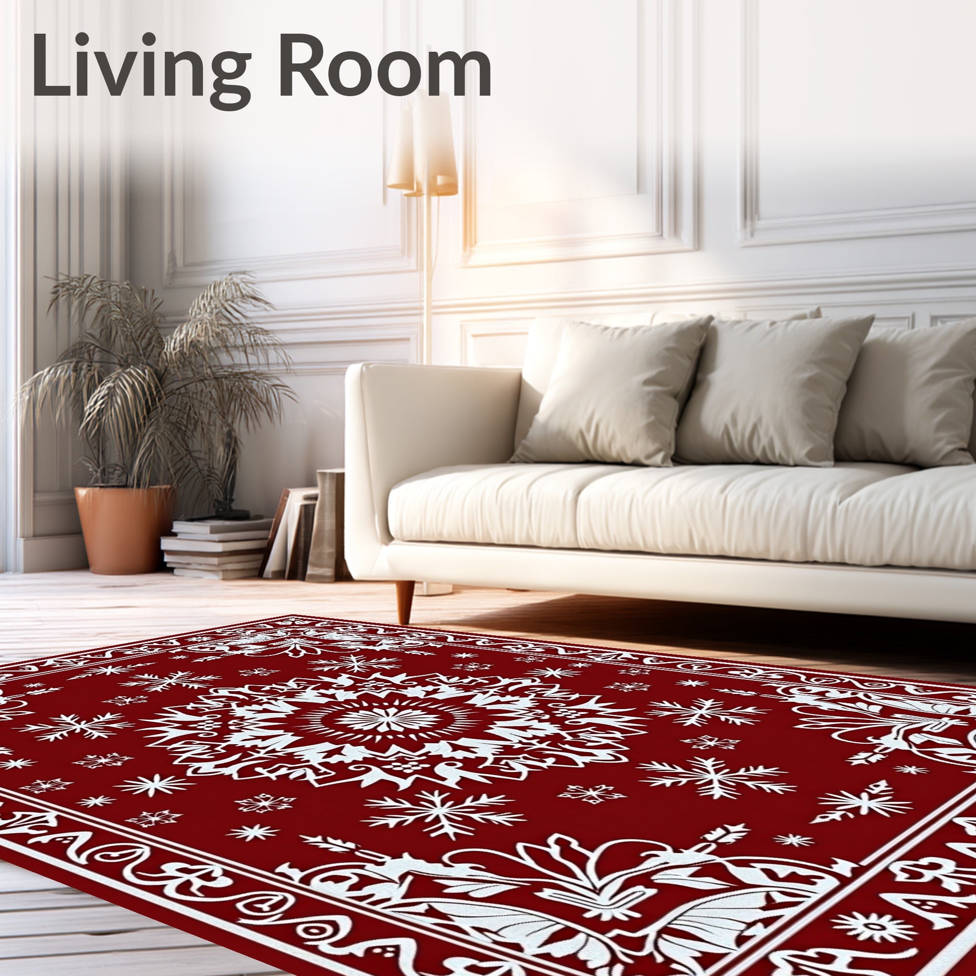 Ultra Soft Area Rug, Non Slip, Stain Resistant, Washable Area Rugs for Living Room, Bedroom, Winter Snowflake Tapestry with Crystalline Motifs(Red) Overview: