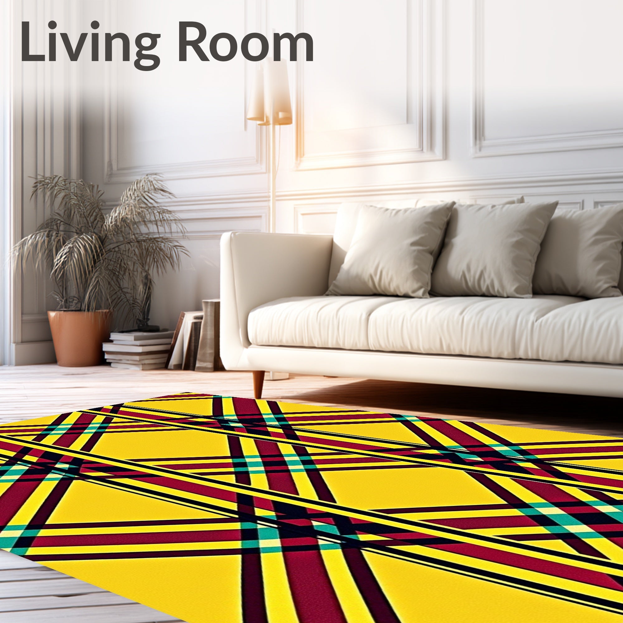 Ultra Soft Area Rug, Non Slip, Stain Resistant, Washable Area Rugs for Living Room, Bedroom, Winter Tartan Plaid Featuring Traditional Scottish Crosshatch Motifs(Yellow) Overview:
