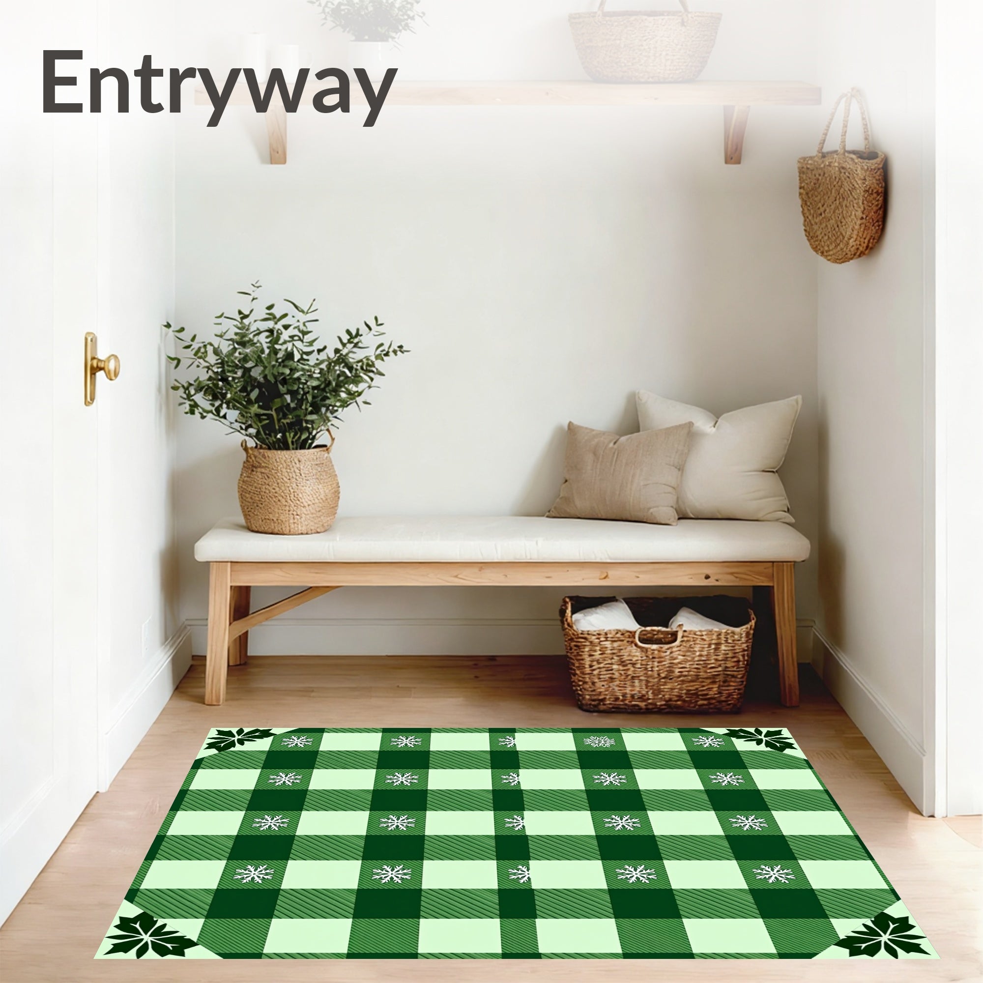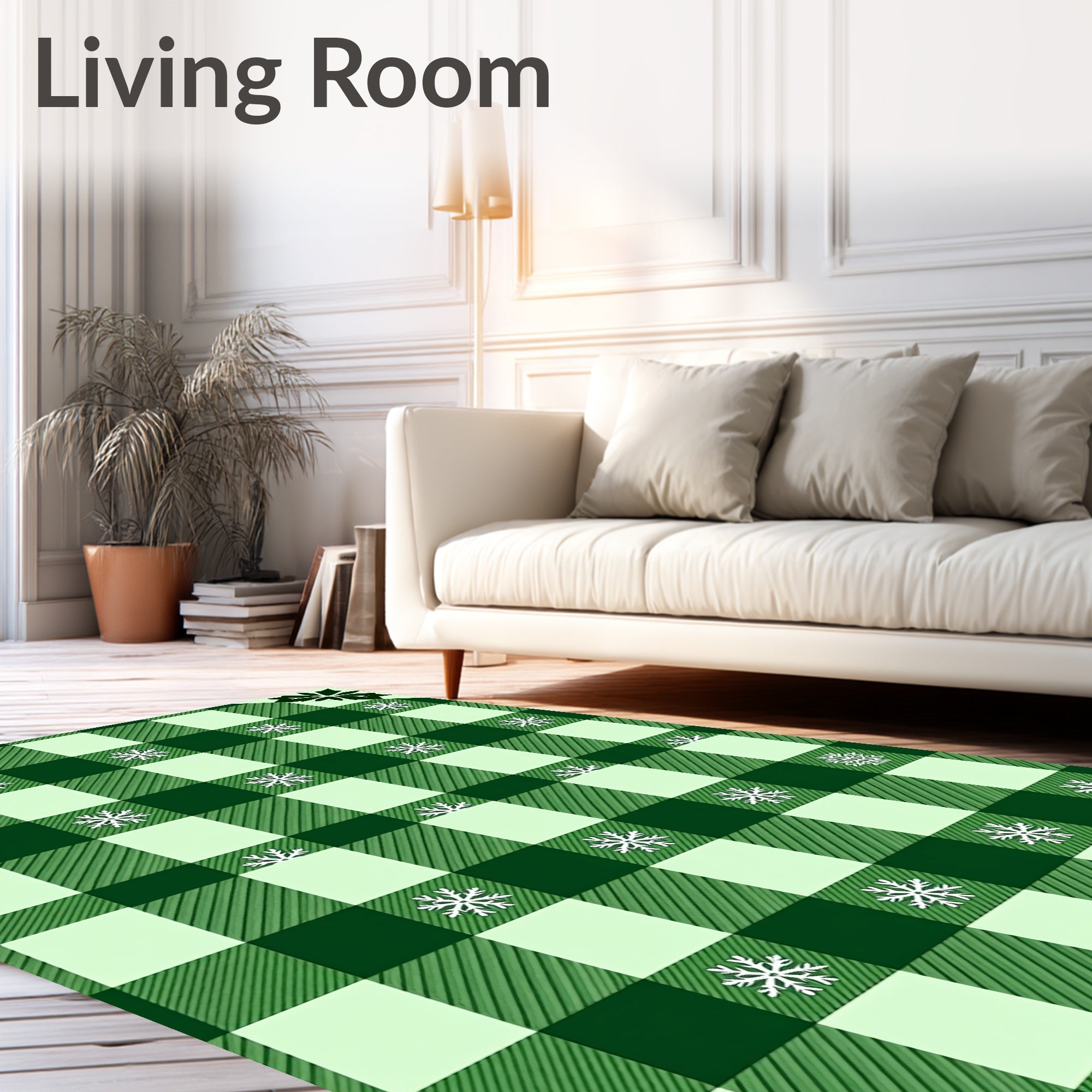 Ultra Soft Area Rug, Non Slip, Stain Resistant, Washable Area Rugs for Living Room, Bedroom, Winter Wonderland Buffalo Check Adornment(Green) Overview: