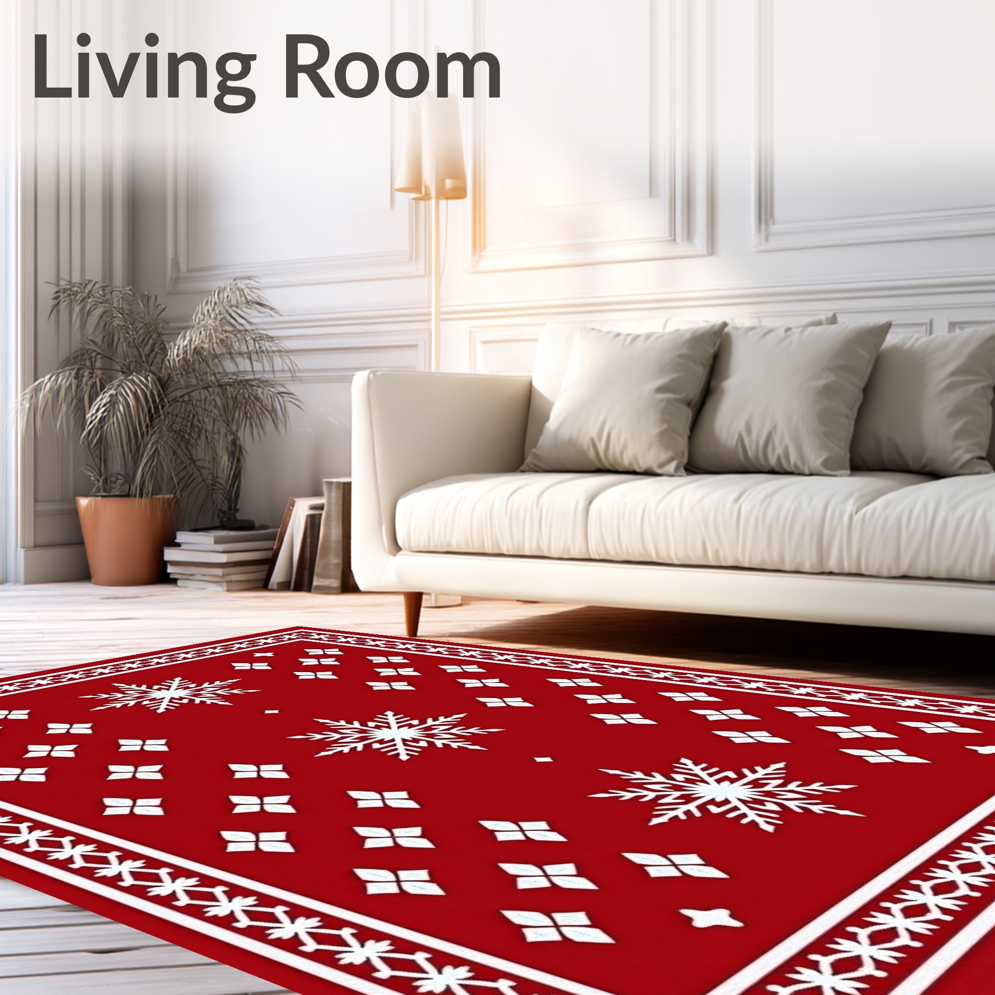 Ultra Soft Area Rug, Non Slip, Stain Resistant, Washable Area Rugs for Living Room, Bedroom, Winter Wonderland Enchanted Beauty(Red) Overview: