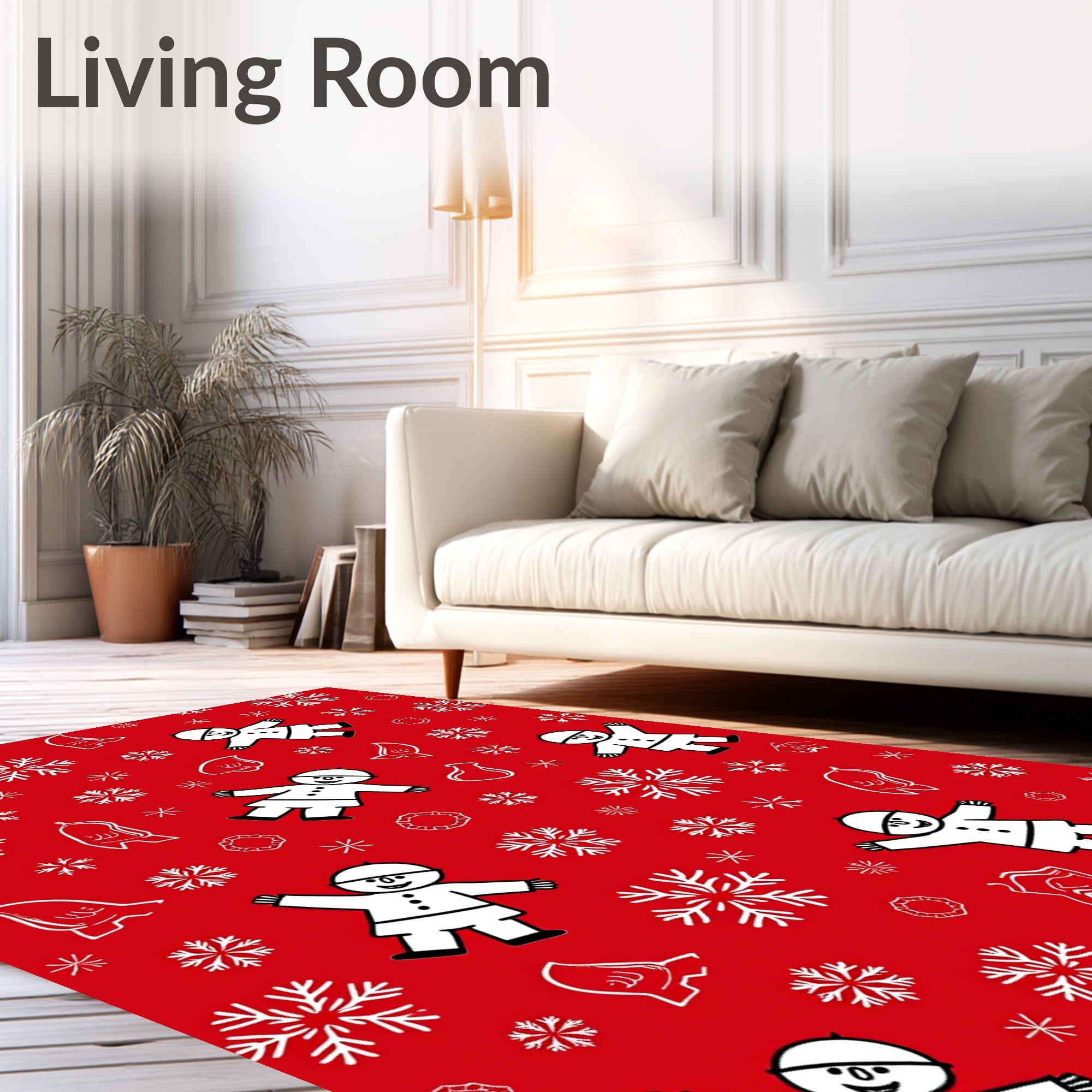 Ultra Soft Area Rug, Non Slip, Stain Resistant, Washable Area Rugs for Living Room, Bedroom, Winter Wonderland Frosty Celebration Pathway(Red) Overview: